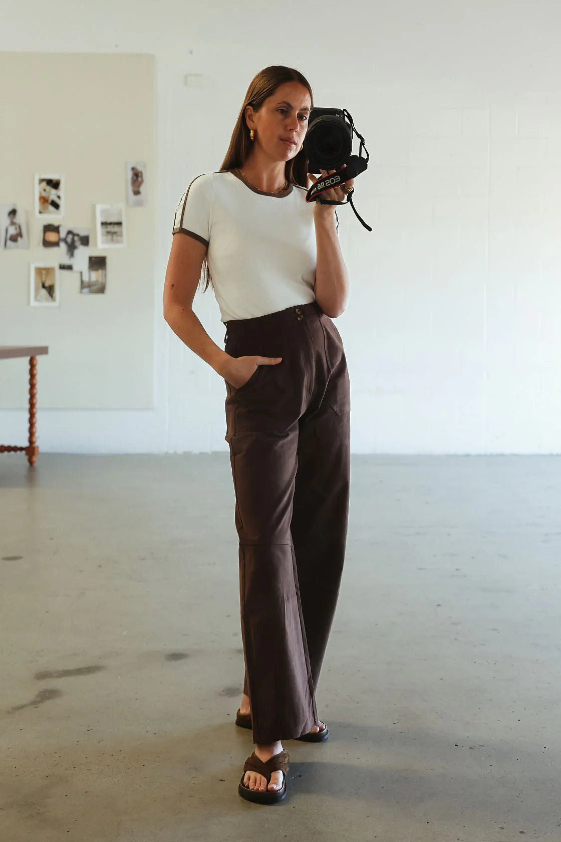 A refined cap-sleeve ringer tee with a subtle sporty edge. The Mischa features contrast stripe detailing along the sleeves and a classic crew neckline. Knitted in a soft, breathable cotton for everyday ease and lightweight comfort.