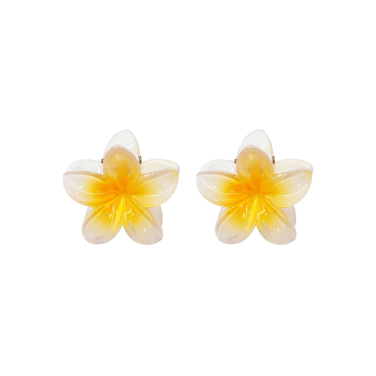 Our most-loved plumeria clips, but mini. Sold in a set of two, these baby clip sets can be styled to hold braids and fine hair.