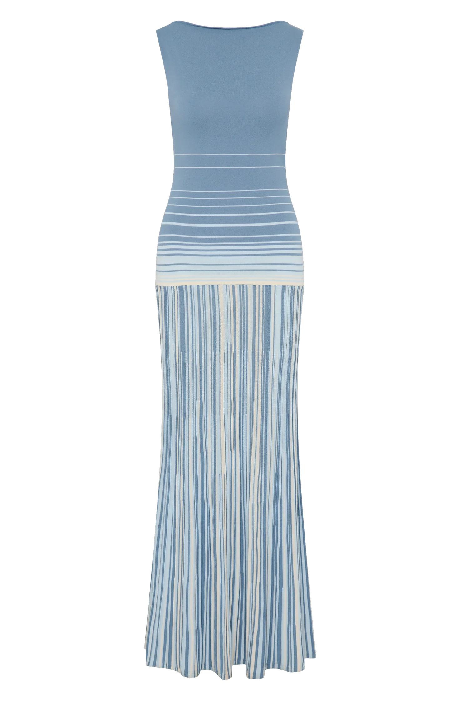 Xyla Maxi Dress Accordion Stripe Mineral Blue