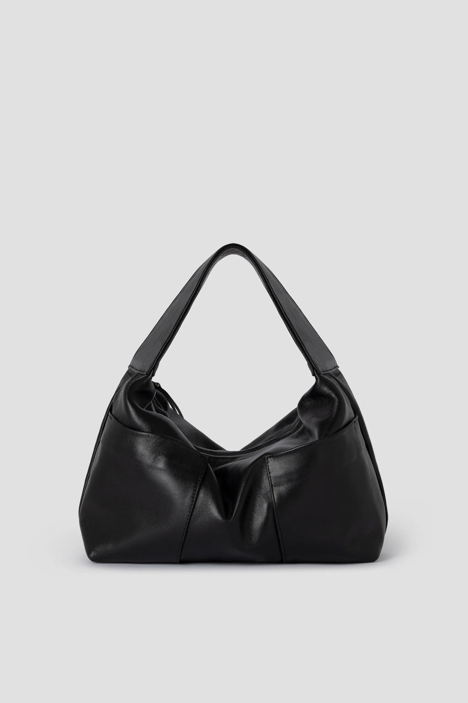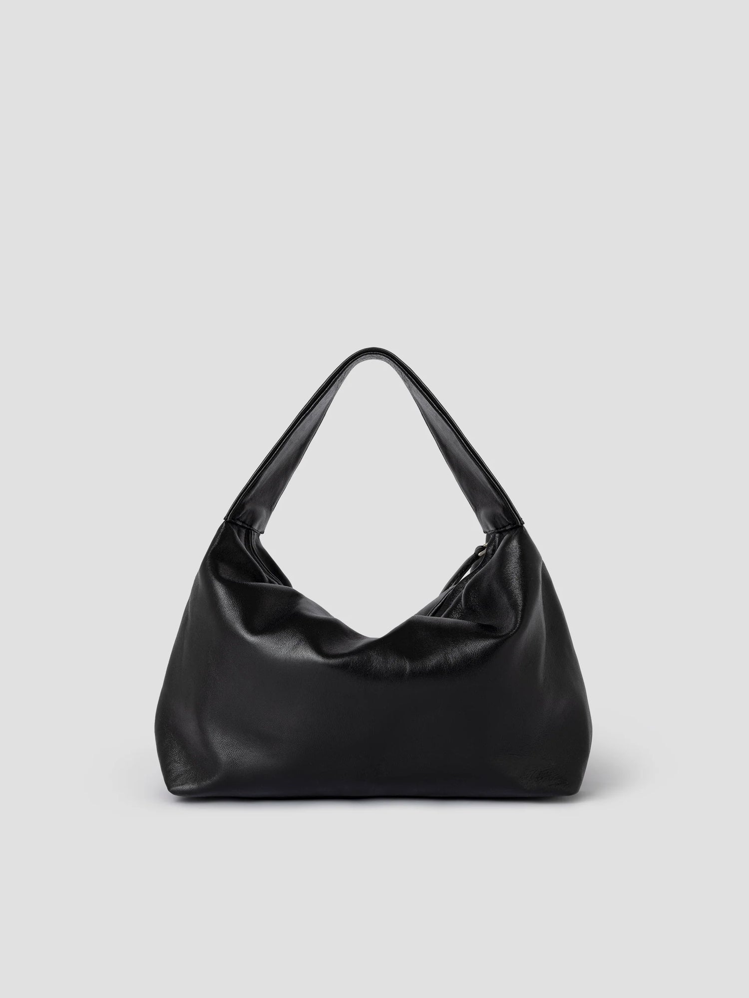 Shoulder bag realized in slightly pebble leather characterized by embossed logo at the back.