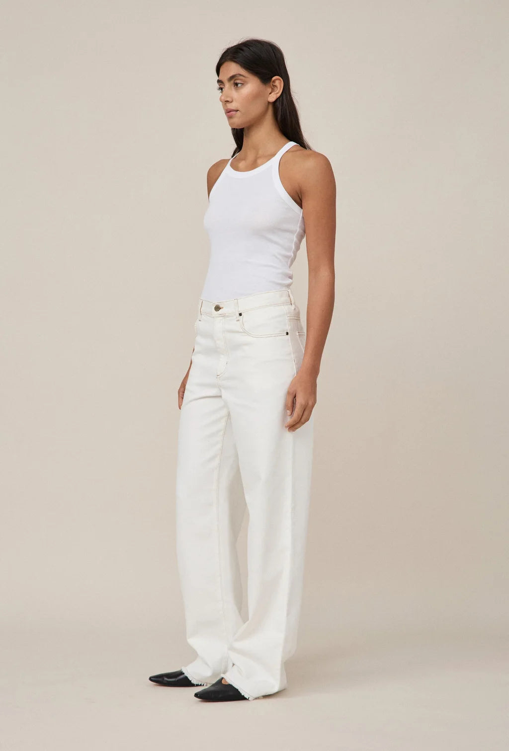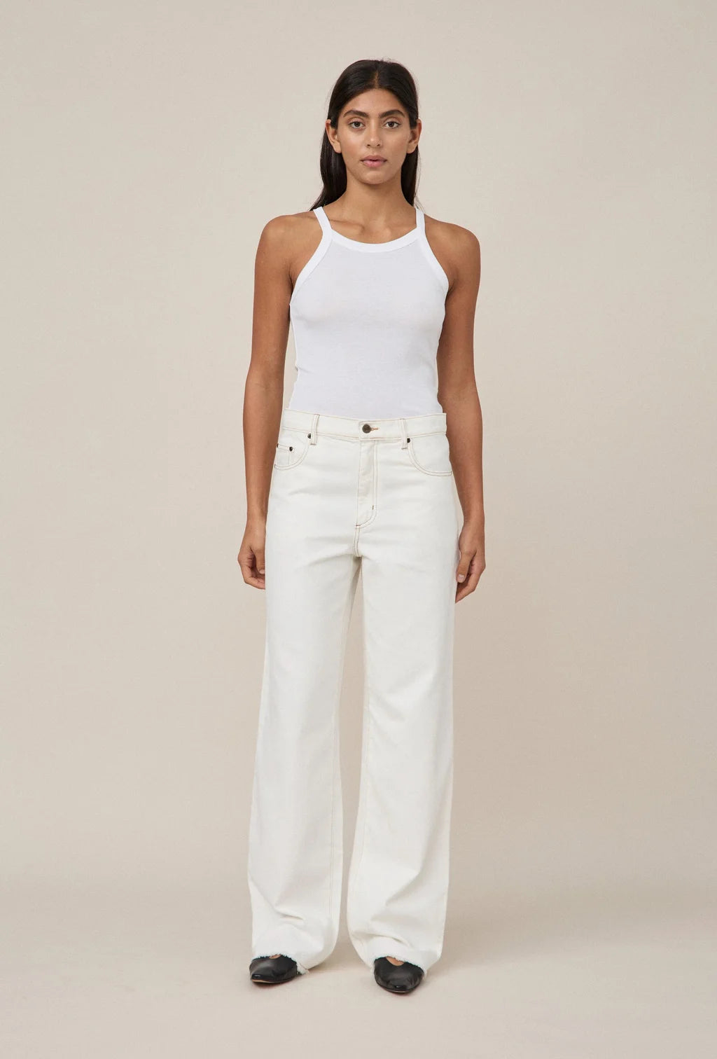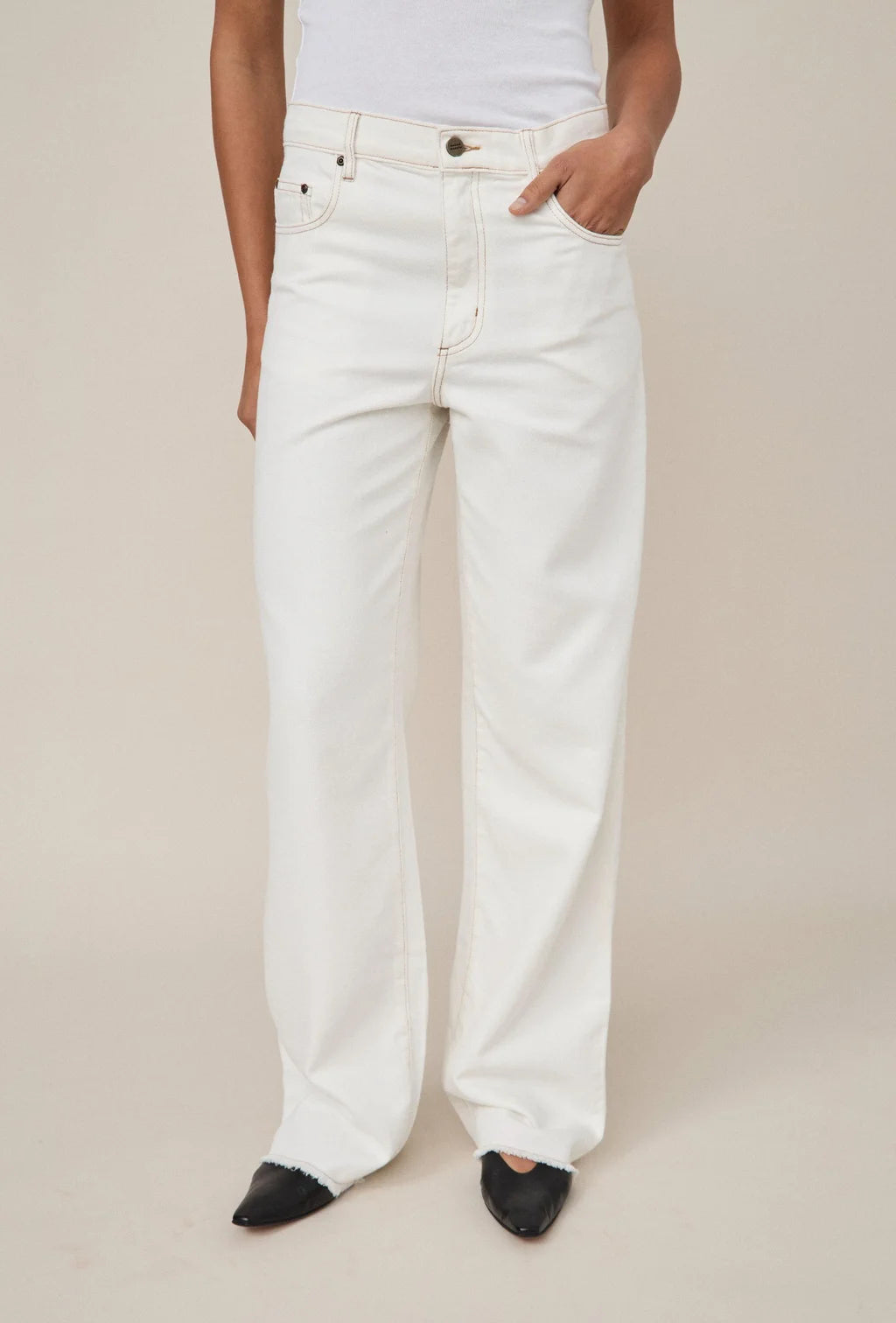 The Freddie Jean is now available in a timeless off-white wash. This wide leg trouser is designed to fit loose through the legs and sit just below the hips, with a frayed raw-cut hem. For an effortless ensemble, style yours with the Grows You To The Clouds Jacket or Early Mornings Shacket.