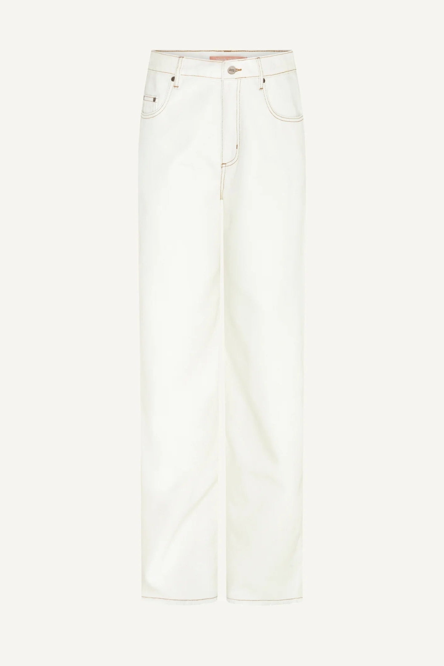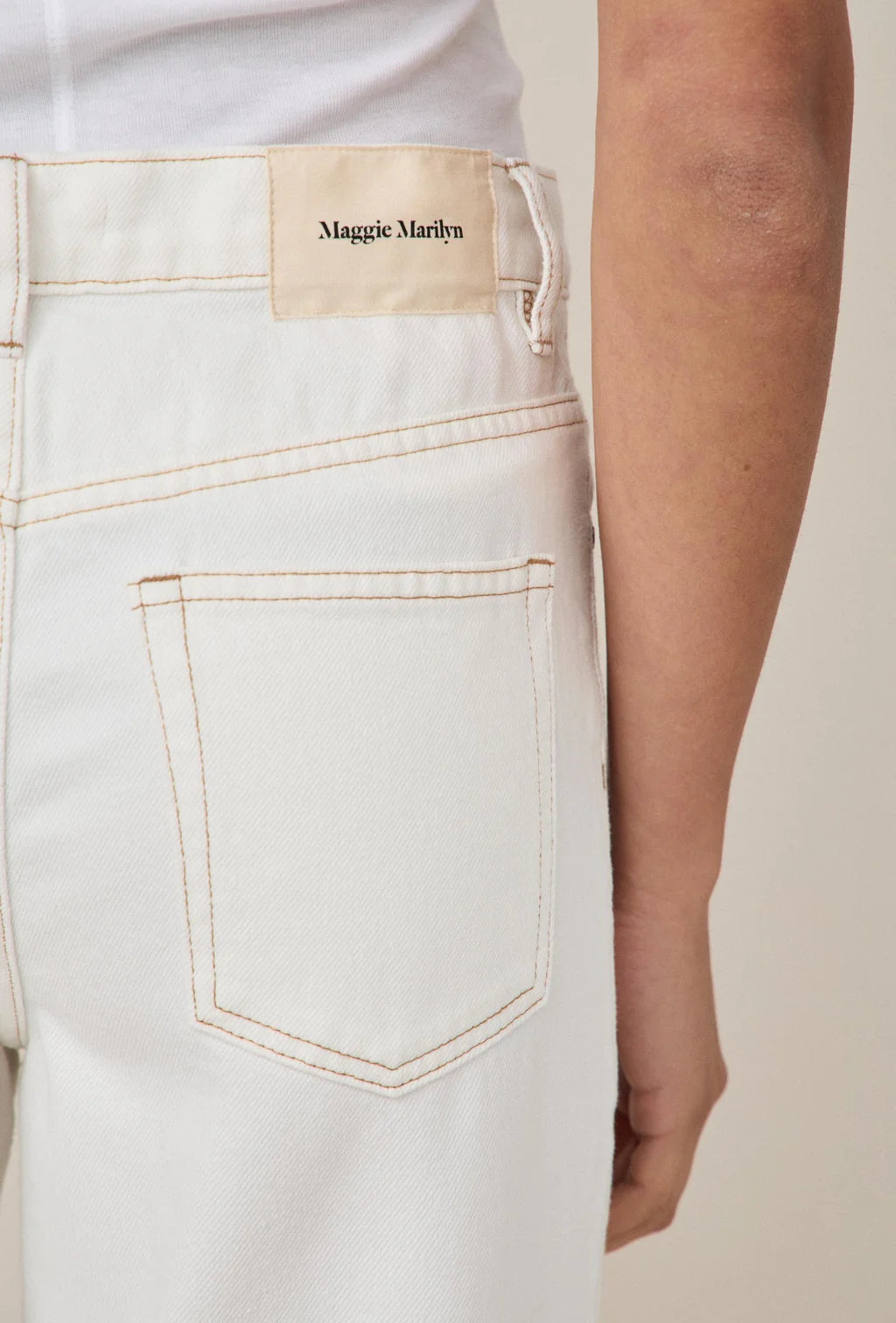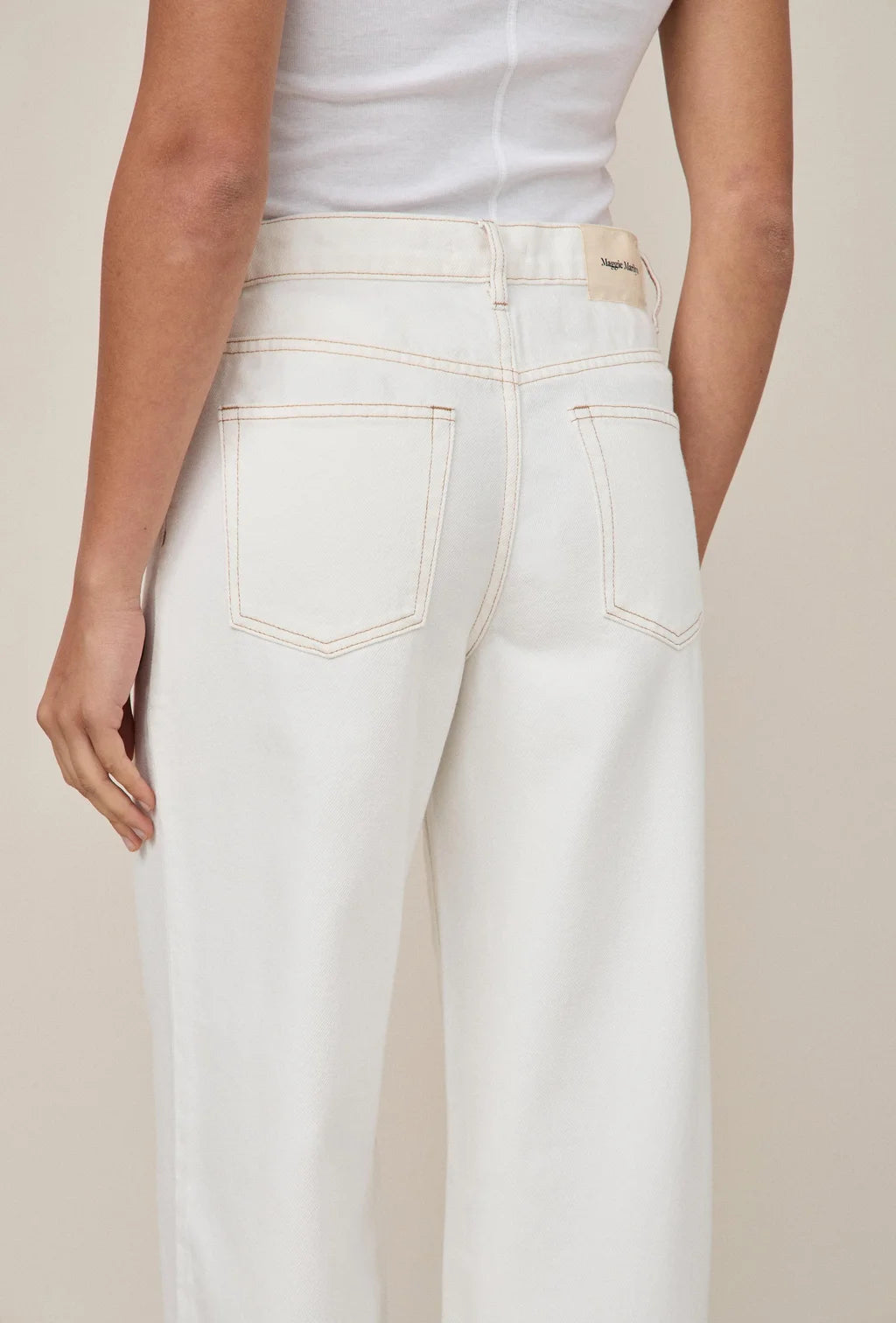 The Freddie Jean is now available in a timeless off-white wash. This wide leg trouser is designed to fit loose through the legs and sit just below the hips, with a frayed raw-cut hem. For an effortless ensemble, style yours with the Grows You To The Clouds Jacket or Early Mornings Shacket.