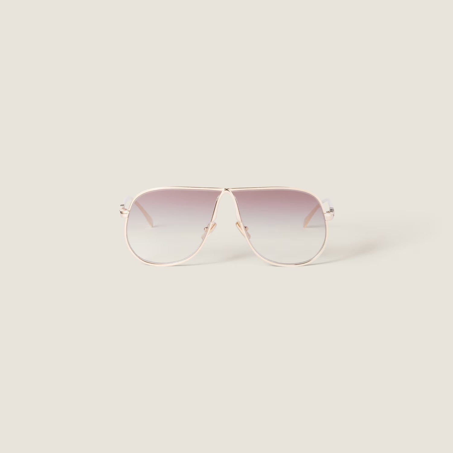 Oversized shapes and refined details blend together in the new edition of Miu Ombre sunglasses. The large metal frame features pilot lenses highlighted by the distinctive bridge design. The temples are decorated with the Miu Miu logo in a contrasting shade.