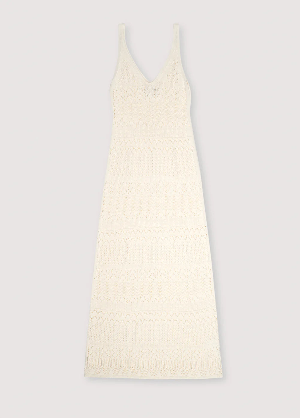 Elegant and timeless, this long knit dress with straps is crafted from 100% organic cotton. Its carefully structured knit provides a flattering silhouette, offering both comfort and versatility. Designed to be worn on its own or paired with its matching long tunic-style cardigan for a complete and sophisticated look. Made in Portugal.