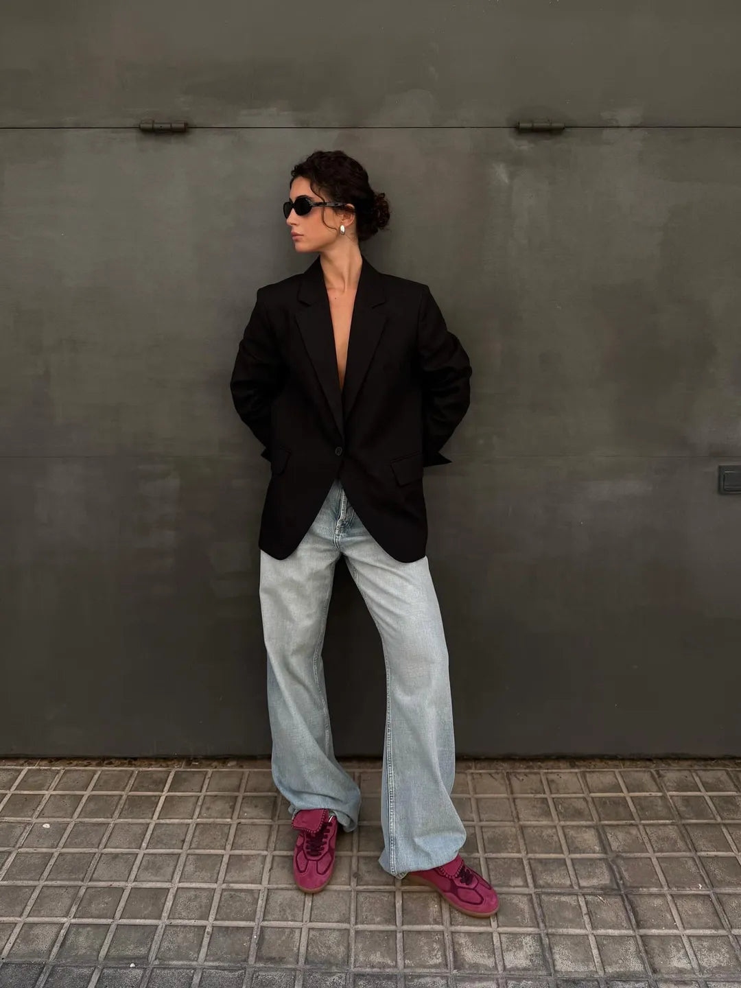 Raspberry suede sneakers with long tongue