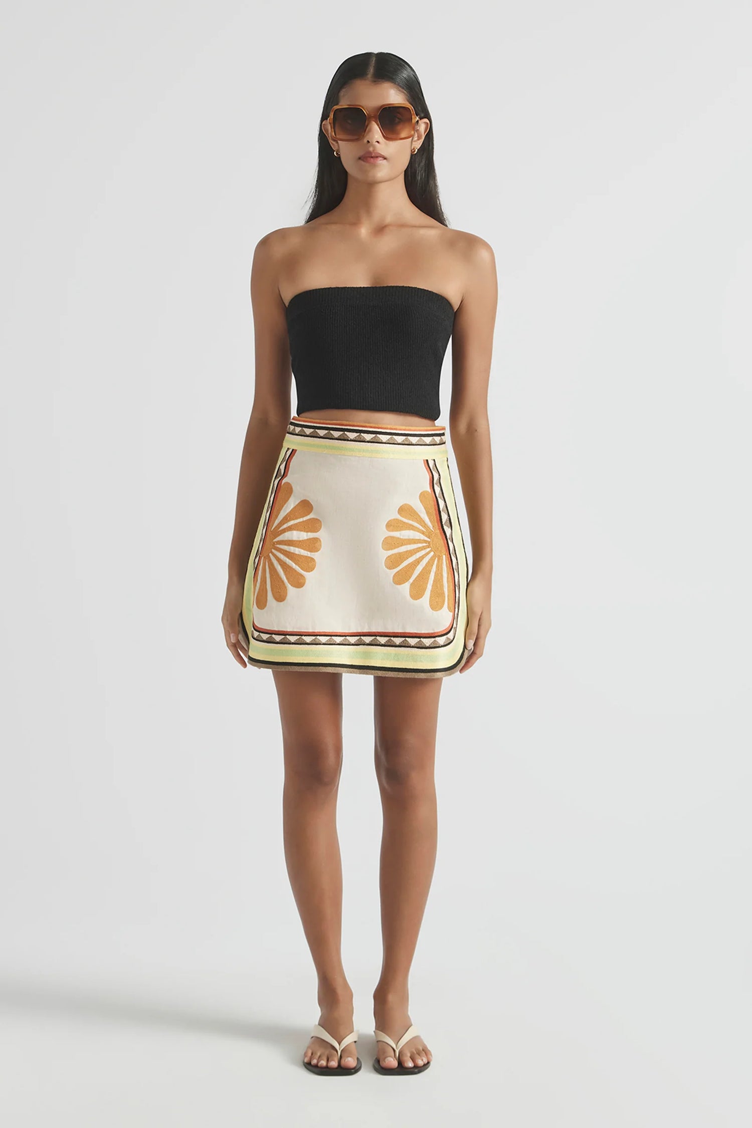 The Deja Vu A-line Skirt offers effortless elegance with its original in-house placement print, exclusive to us and hand-drawn by our founder. Crafted from luxurious linen, this mini skirt features a curved hem, side splits, and an elastic back waist for comfort. Fully lined for a smooth finish, it pairs perfectly with the matching Deja Vu Oversized Crop for a chic, coordinated look. Ideal for daytime outings or casual evening events