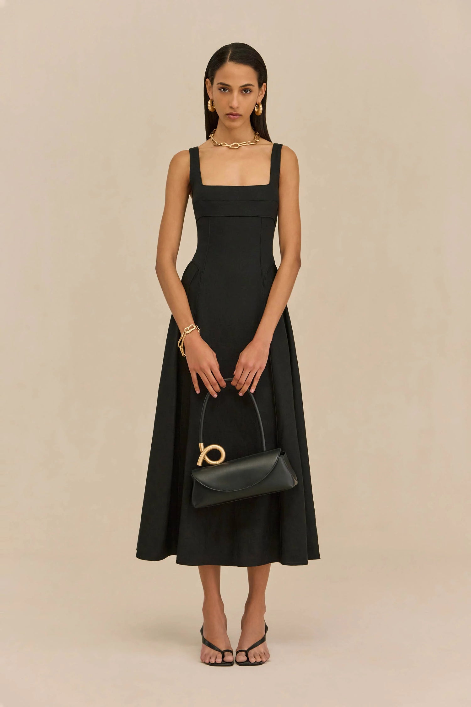 A smooth leather shoulder bag defined by its curved flap silhouette and finished with a sculptural gold-toned twist handle.