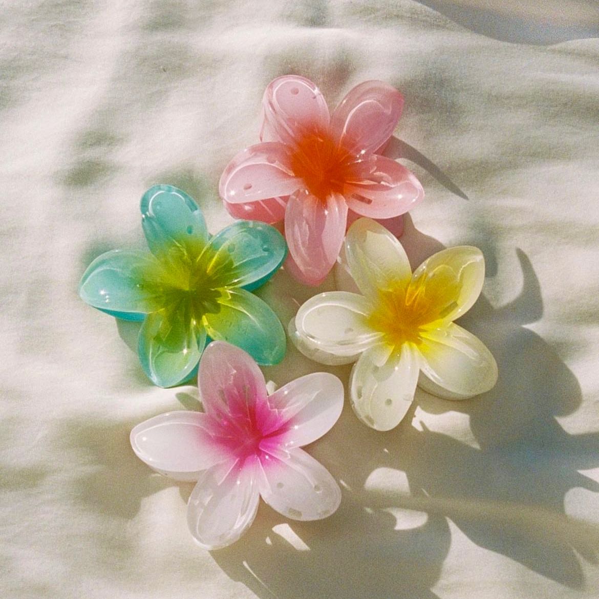 Inspired by the plumeria flower, the super bloom hair claw clip represents love and new beginnings. Effortless yet playful, this claw clip is large enough to hold a full head of hair. Add baby blue and lime hues to your everyday hair.