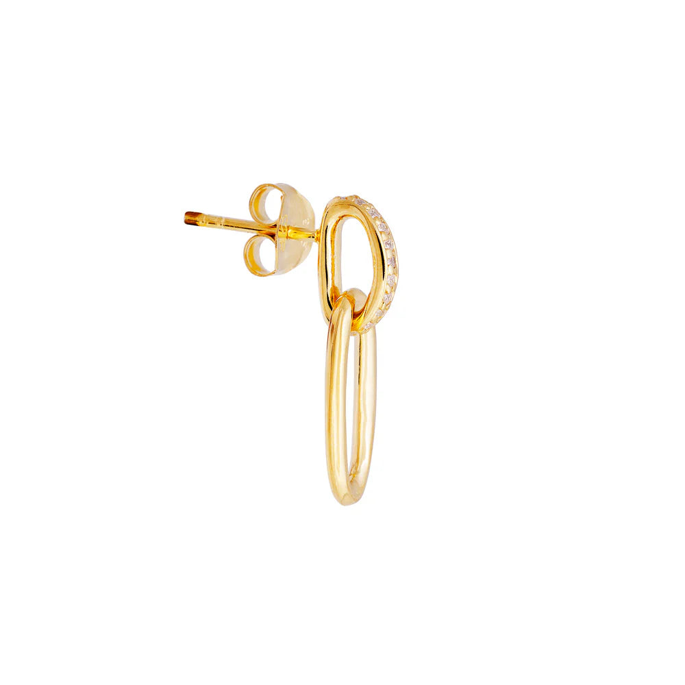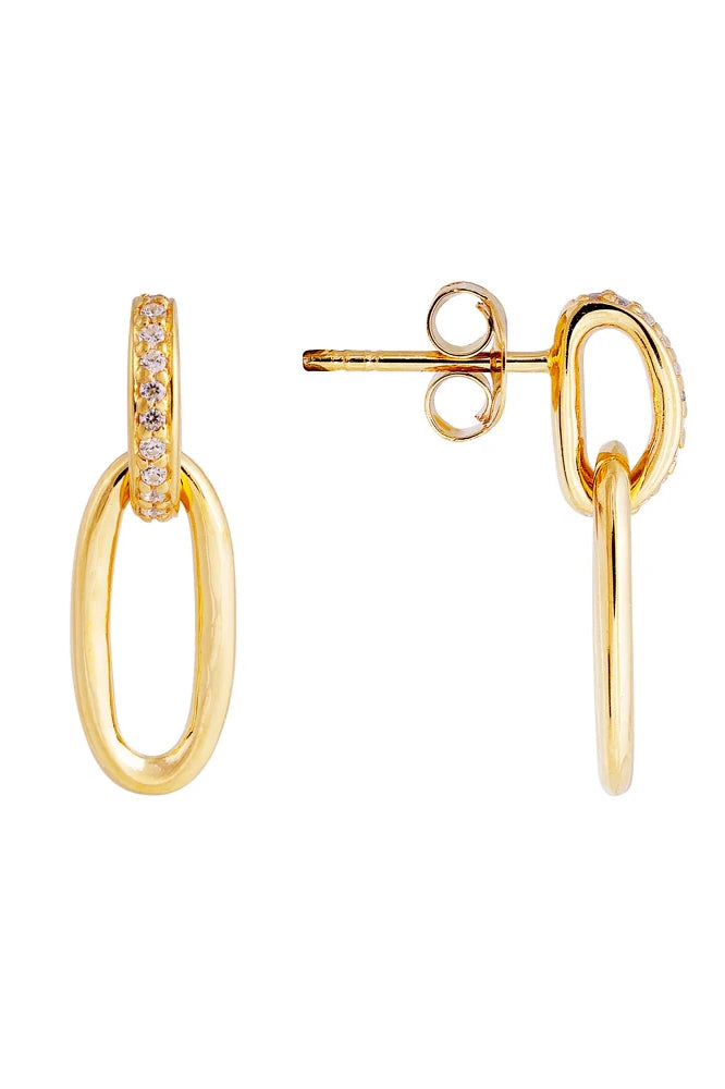 Make a statement with these oval link studs, featuring a captivating double-oval design. The outer oval frames a smaller inner oval, both adorned with shimmering white crystals that catch the light from every angle. Perfectly balancing boldness and elegance, these earrings bring a modern celestial sparkle to any look — effortlessly elevating your everyday style or adding a touch of glam to special occasions.