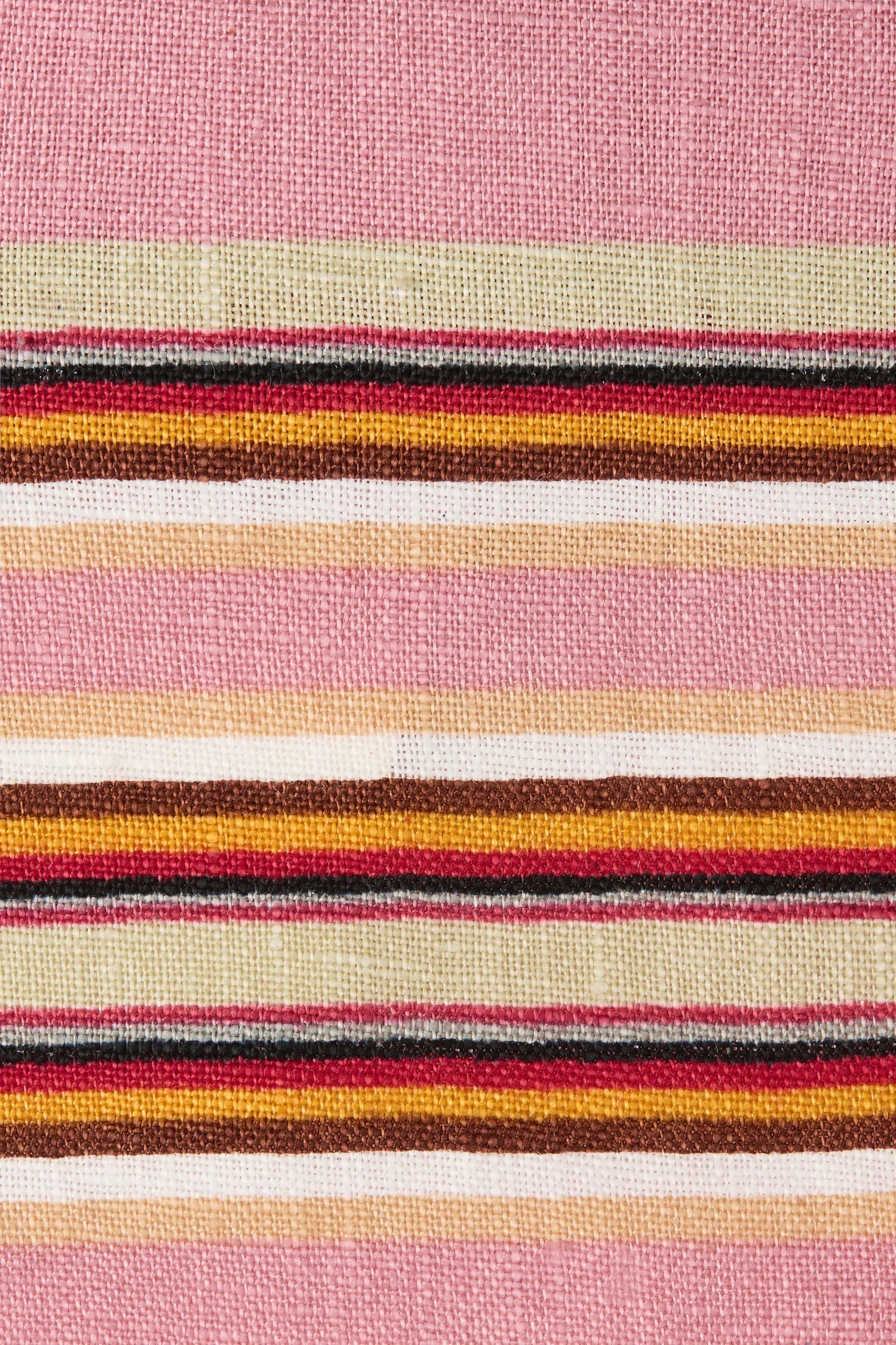 A vacation-inspired maxi dress, designed from a signature 100% European Flax® linen in a warm multi-colour stripe, bringing in tones of mauve, olive and chocolate brown. Sleeveless with a boat-style neckline and knot details at either shoulder, it cinches in at the waist with custom back waist ties before flaring into a soft A-line skirt. With effortless, summer appeal in mind, style with a simple sandal for lunch by the seaside.