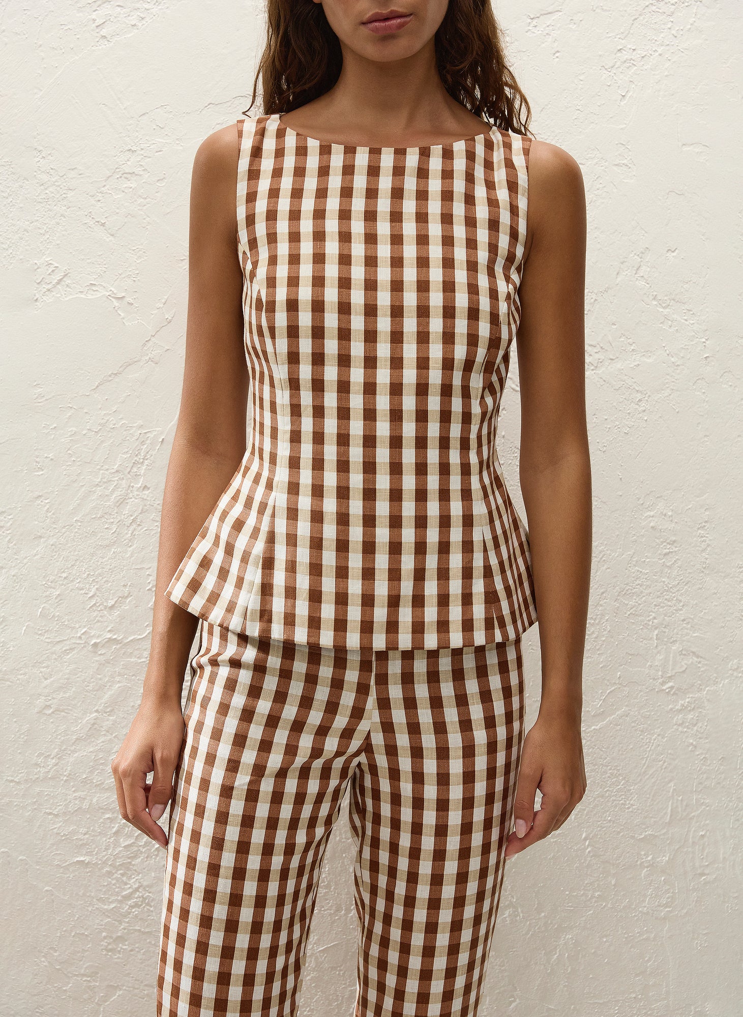 A high-rise capri pant, designed from a signature 100% European Flax® linen in gingham. Sitting up at the waist, they offer a straight leg fitted silhouette that flares out slightly as they crop below the knee. Softly tailored but with an ease of wear, styling with the matching Mina Top for timeless set dressing.
