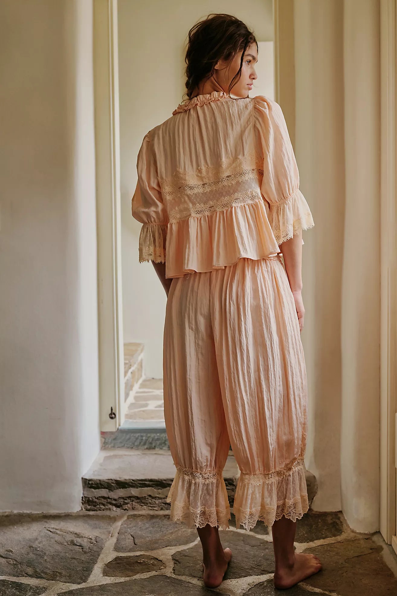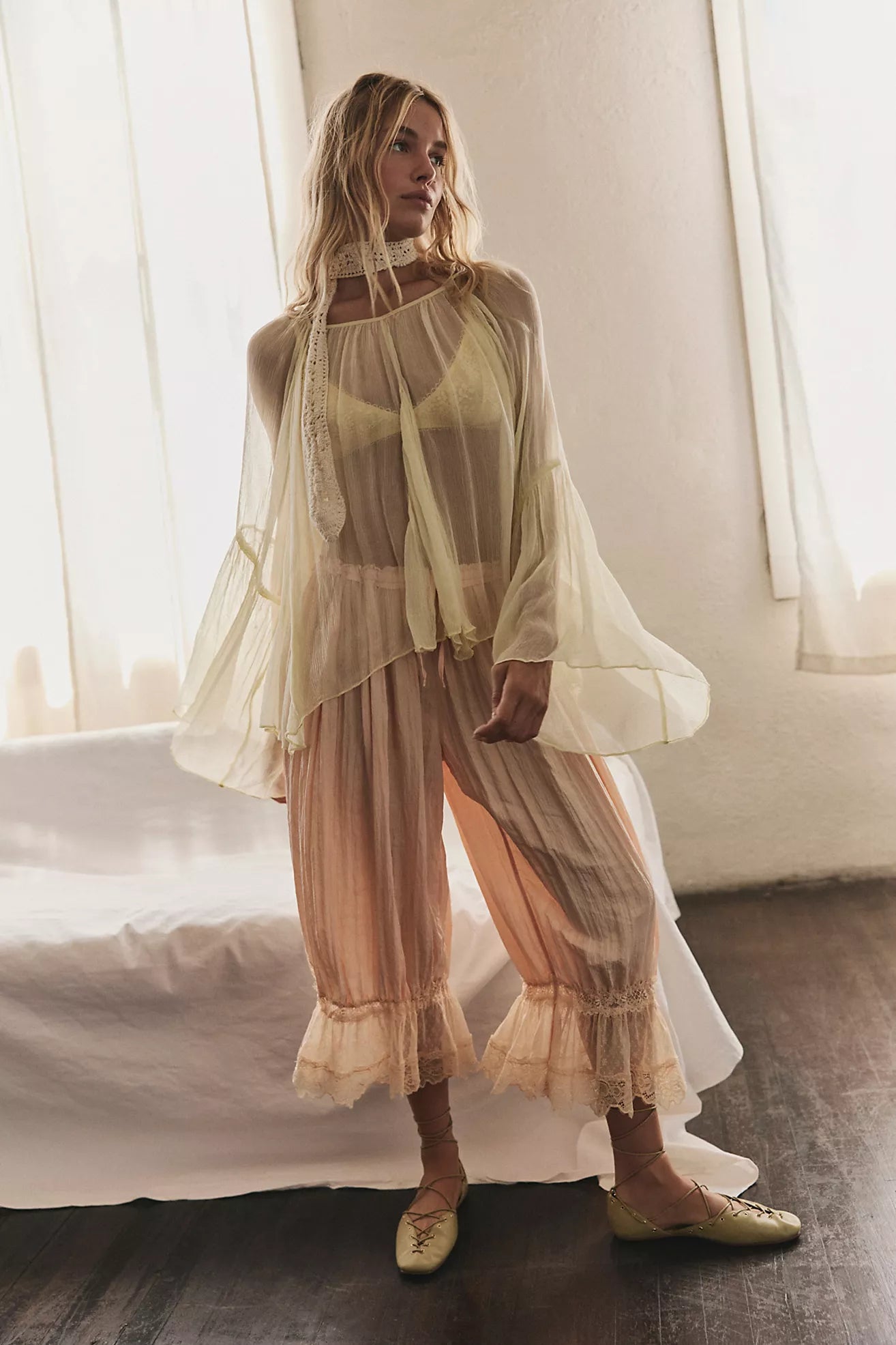 An elevated take on the classic bloomers, these pants feature a soft fabrication and mid-rise fit with feminine lace trim and functional tie-front detailing.