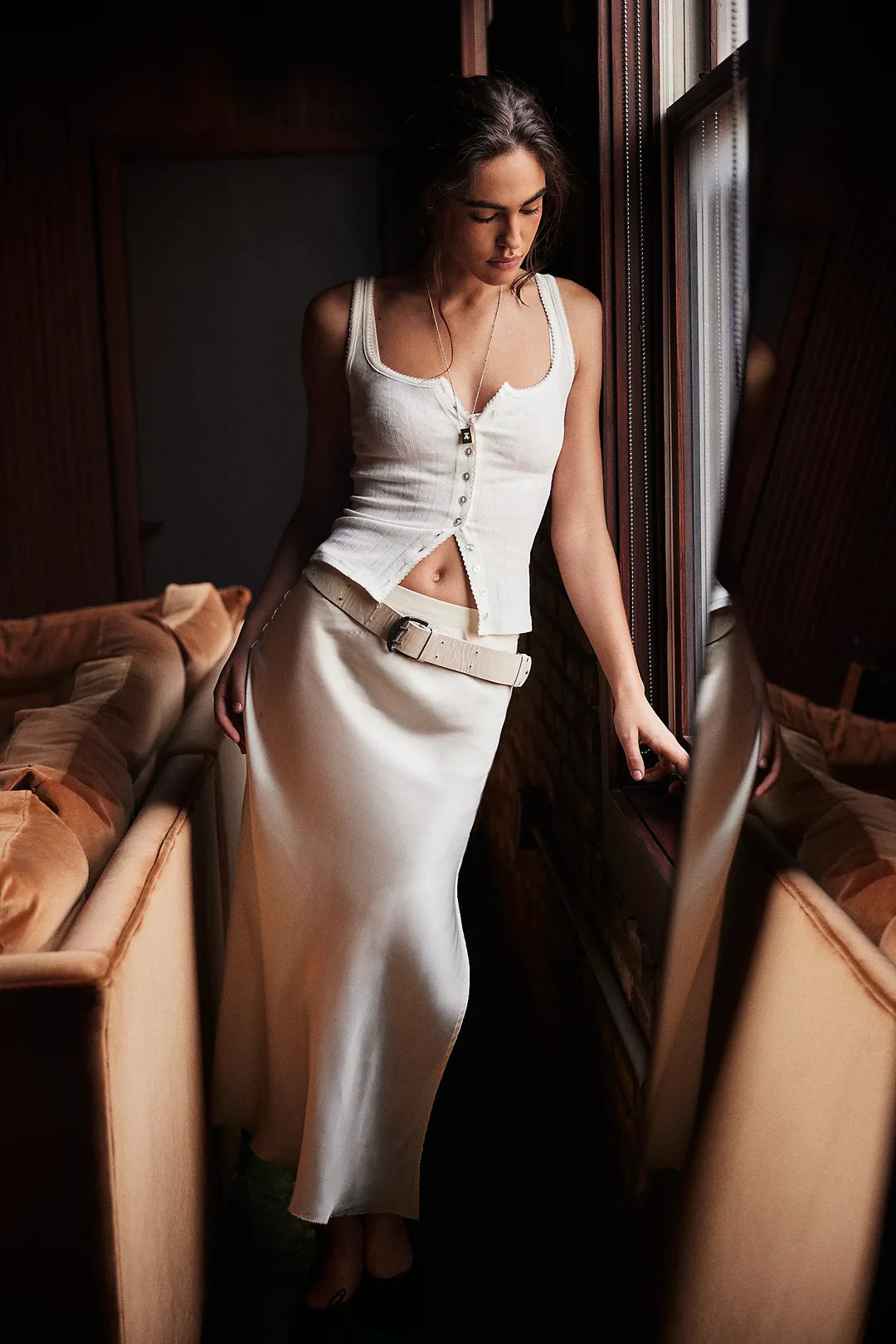 The perfect timeless tank, this sweet staple is featured in a soft cotton fabrication and button-front style with a wide square neckline and pointelle detail.