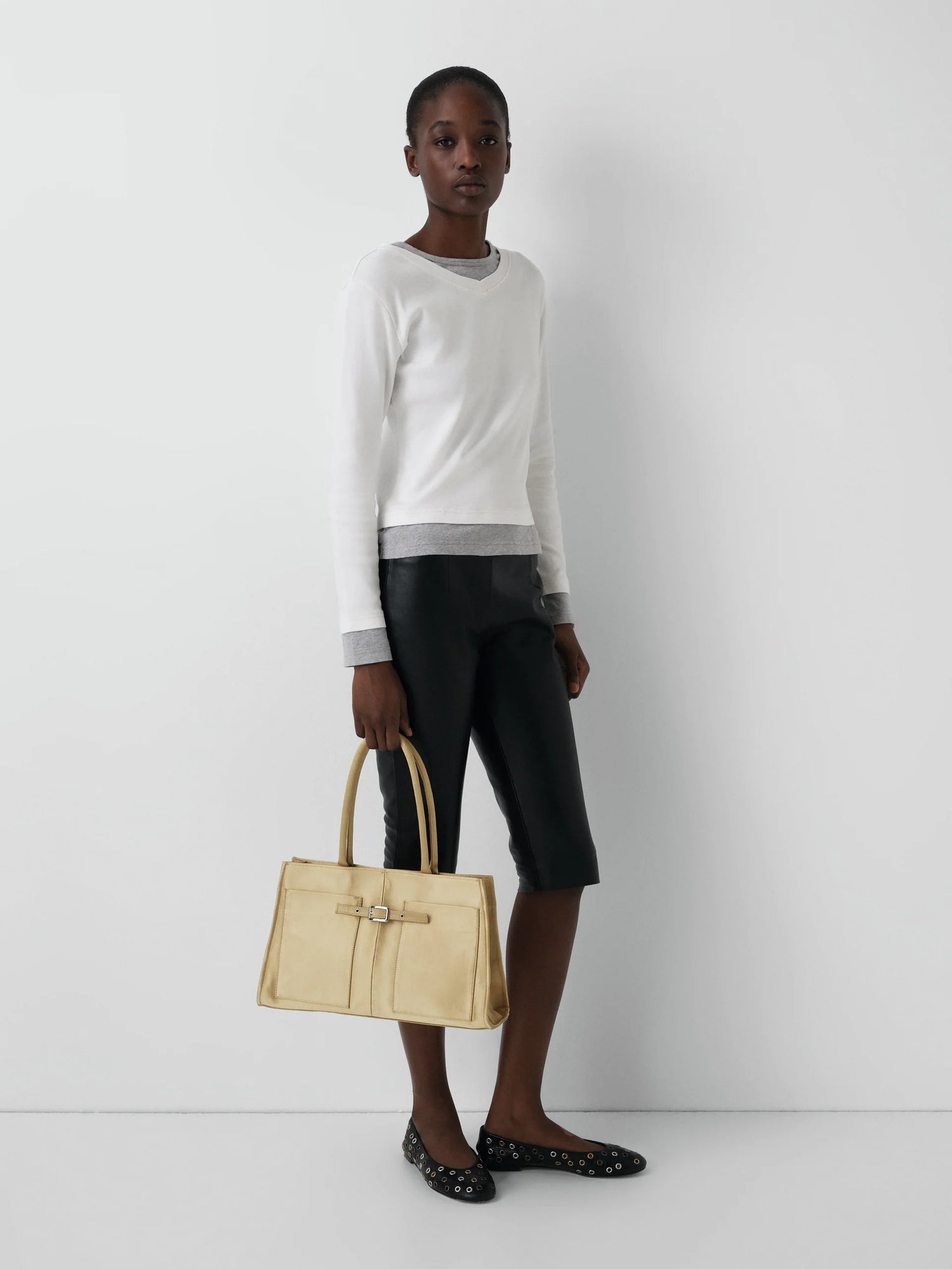 Contrasting layered white and grey color blocks