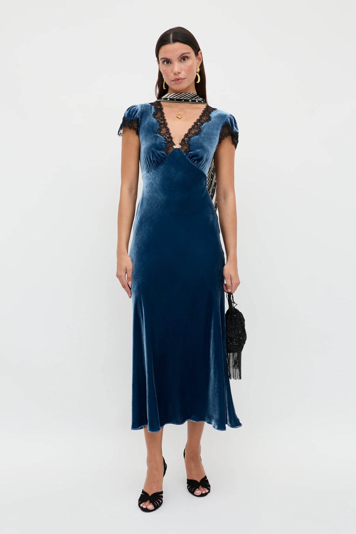 The iconic Clarice, now in a beautiful Steel Blue velvet. Inspired by a vintage nightdress, it’s the perfect dress that blends elegance and ease, made for you to reach for time and time again. Style with a dinner jacket and your go-to earrings and you're good to go.