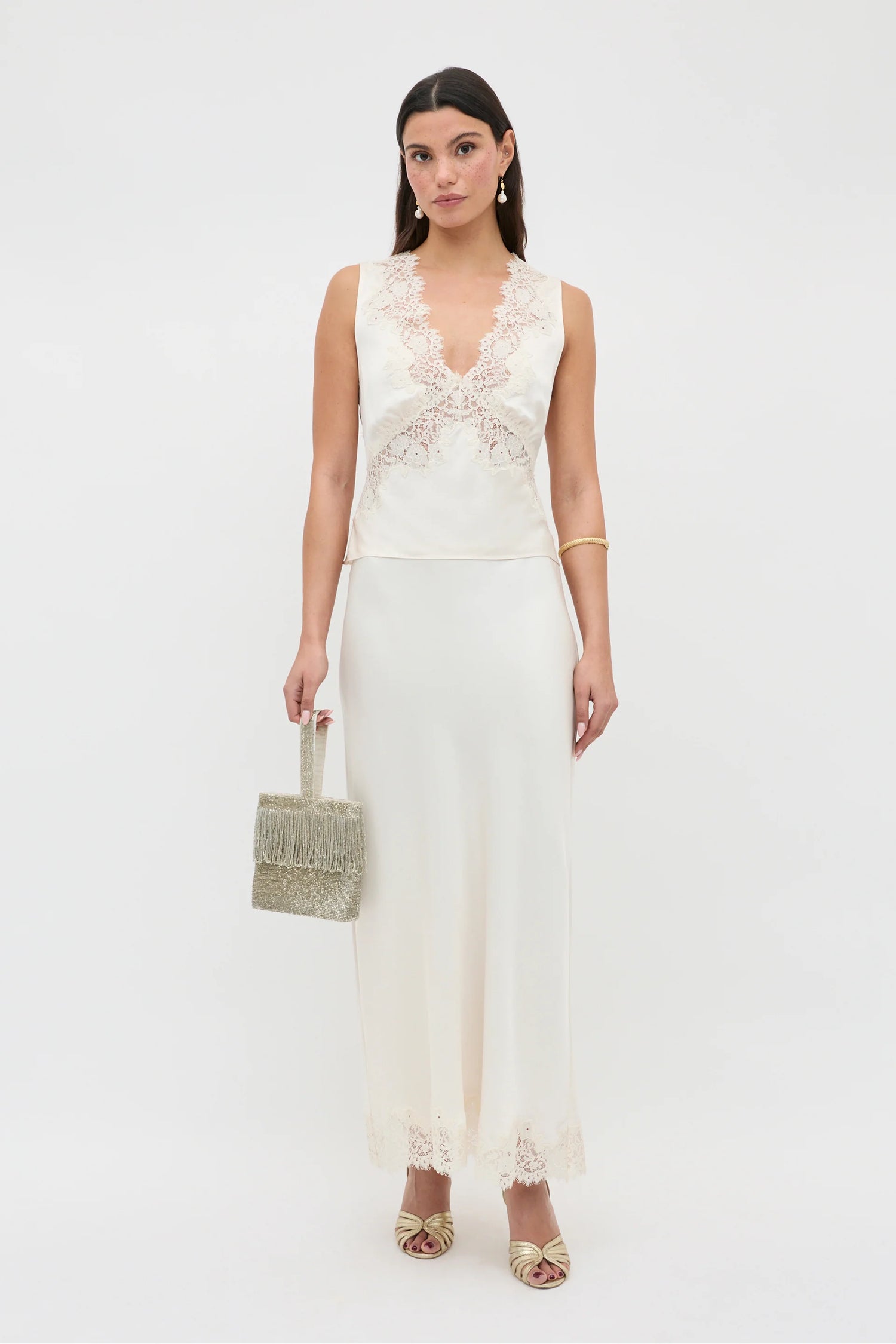 Meet Emmie, our new little satin separate. Adorned with delicate lace, it’s whimsical and romantic with a soft, sultry edge. Style it with a satin midi skirt or tailored trousers for special occasions, or for a pared-back look, wear it with your favourite jeans and a pair of ankle boots.