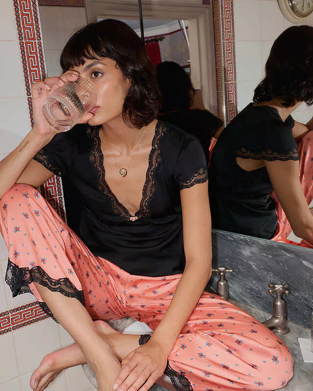 ur romantic Karia top is vintage-inspired and a new wardrobe staple in the making. Crafted from a sumptuous satin with delicate lace detailing along the neckline and sleeves, it styles like a dream with jeans or with the matching Mireille Trousers and heels for an effortlessly chic evening look.