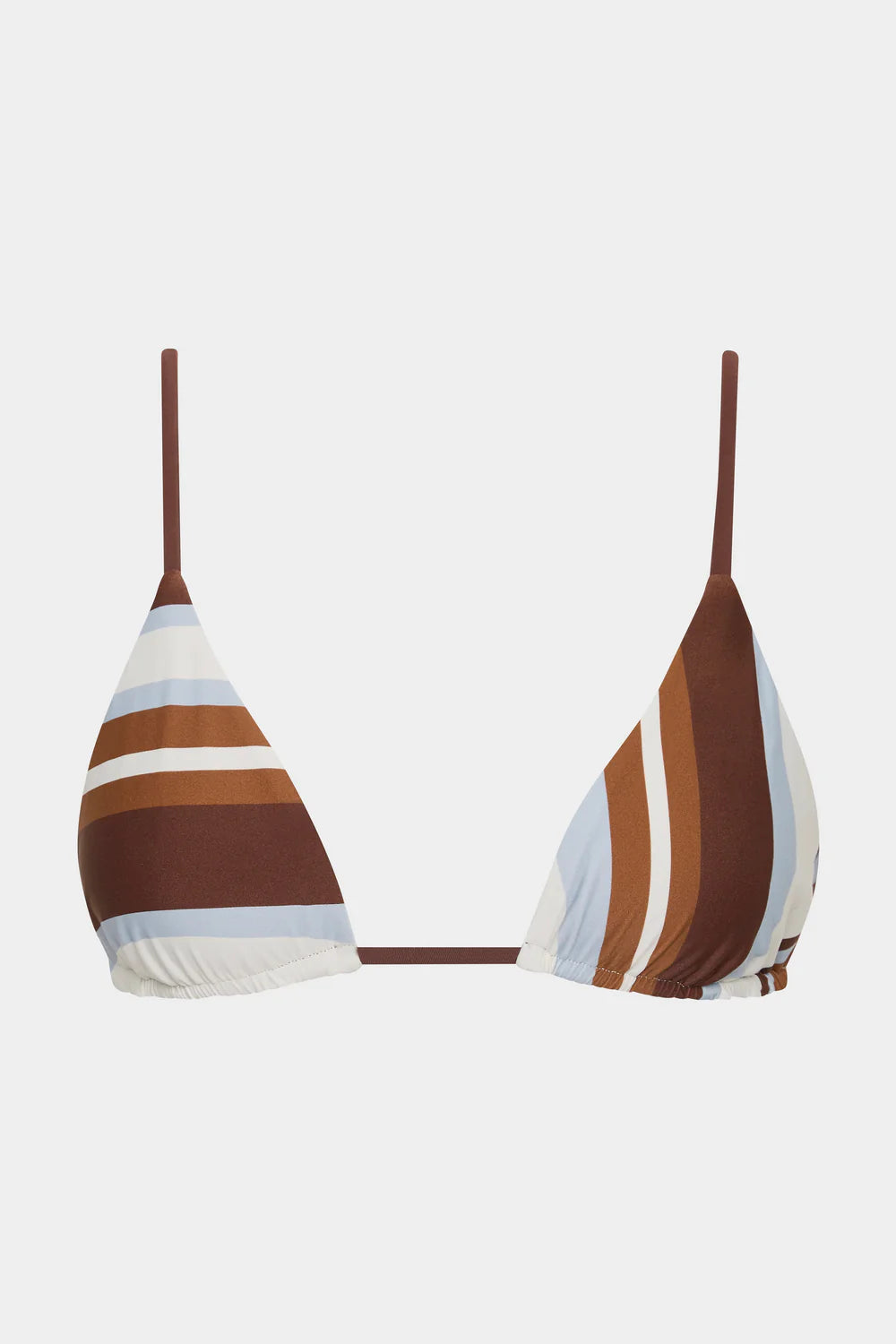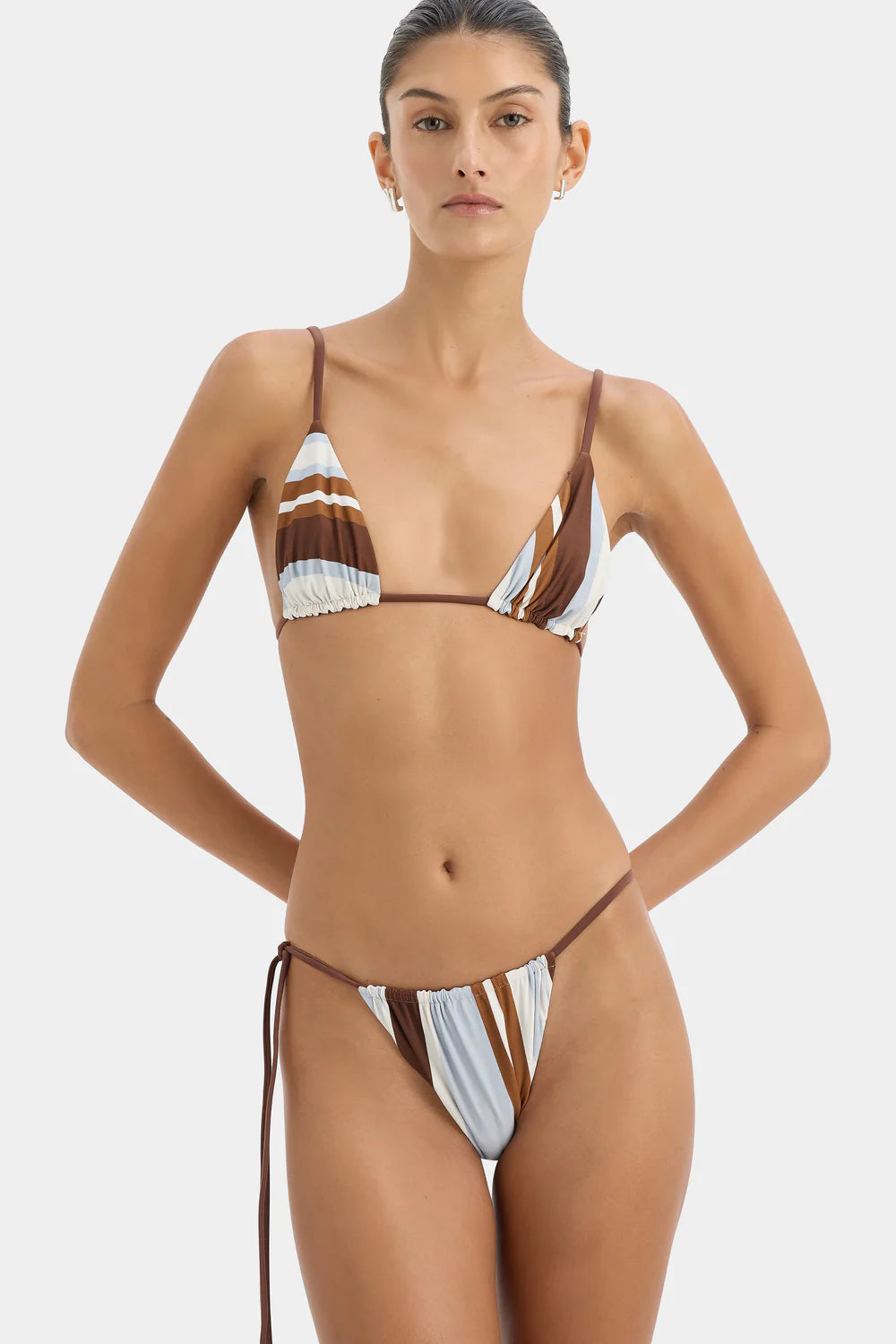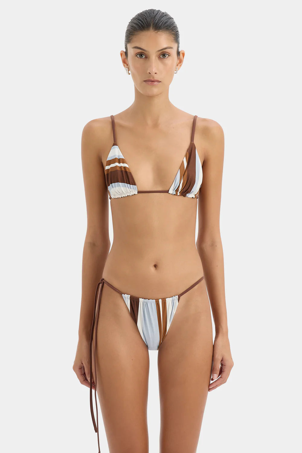 The Marais String Triangle Top in Metro is our signature bikini top, crafted from form-fitting lycra, patterned with an exclusive large scale SIR. stripe. It features sliding cups and adjustable self ties for customisable coverage. Pairs with the Marais String Brief.