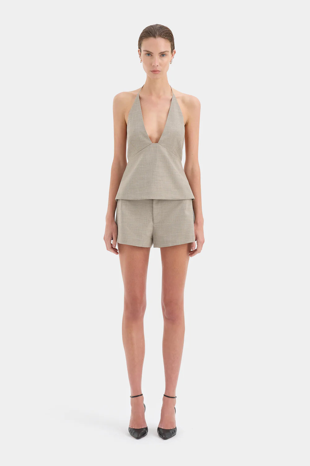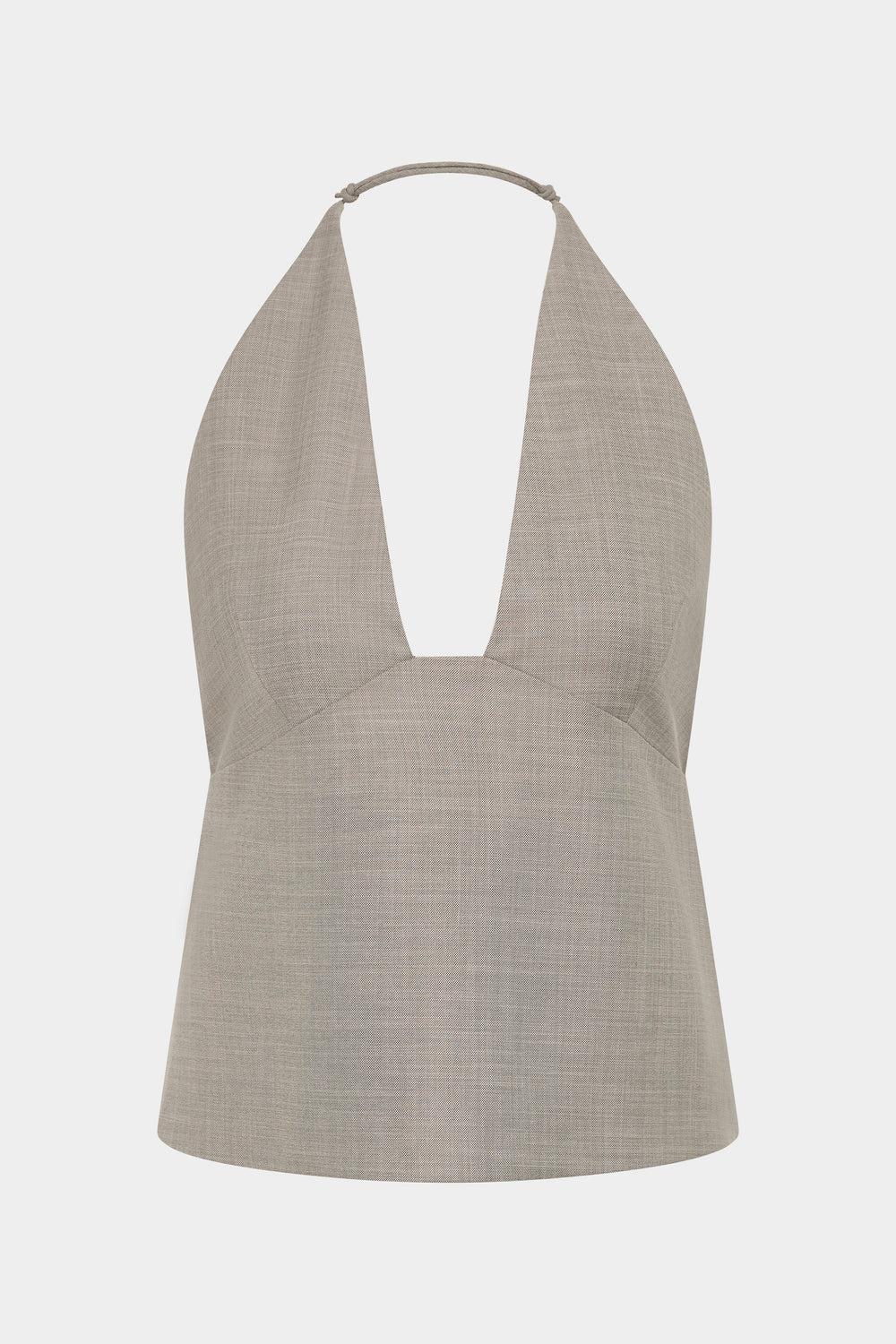 The Solene Halter Top in Grey Marle is crafted for lightweight summer suiting fabric. Featuring a halter neckline, open back and adjustable straps with resin hardware for a tailored fit. Pair it with the Solene Halter Short or Trouser for a transeasonal two piece set.