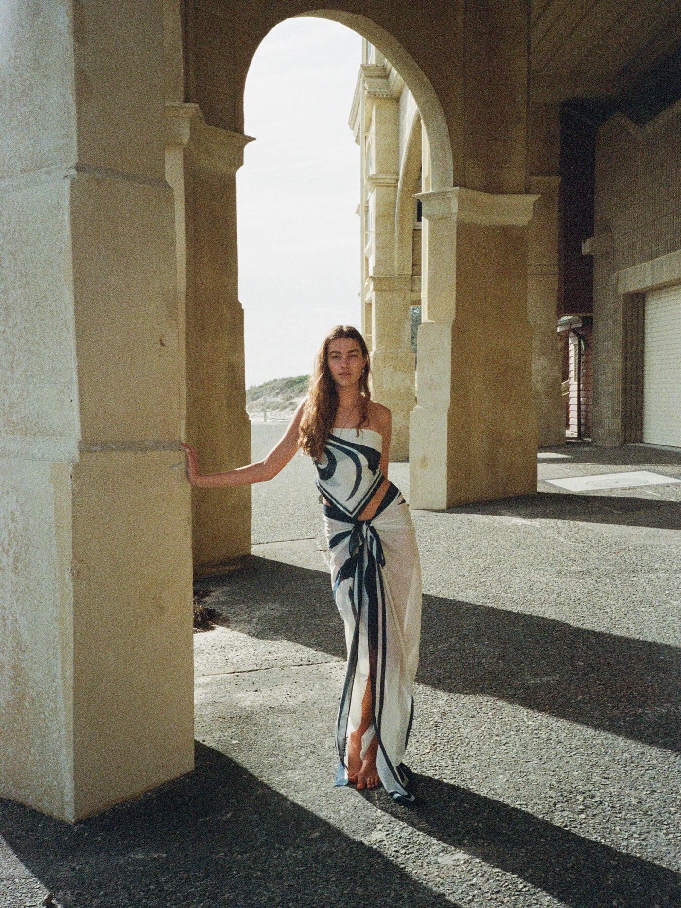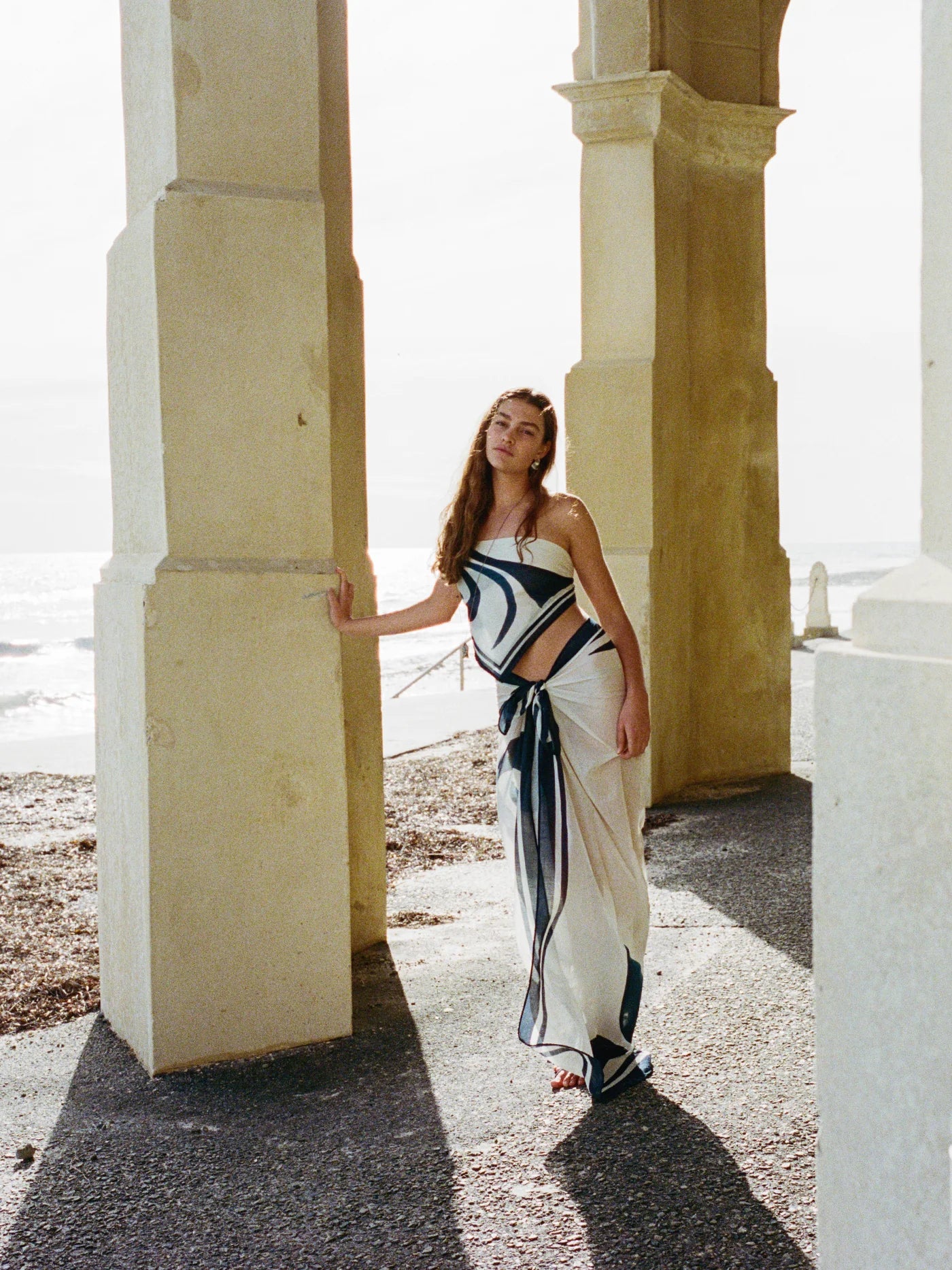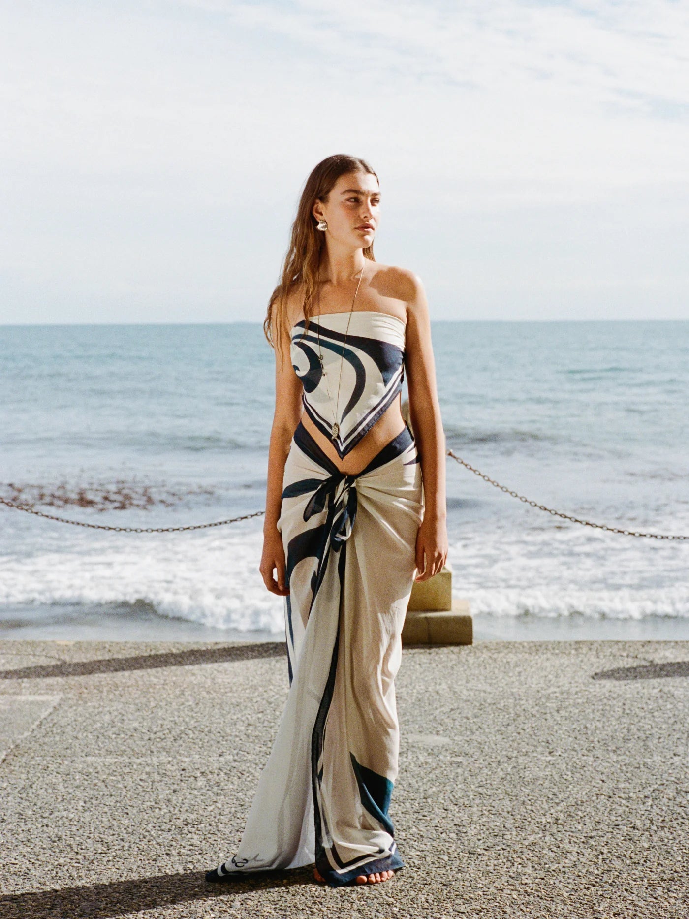 Where it all began. A perfect square of lightweight organic cotton, versatile for all your over-swim needs. Our signature piece—the Square Pareo can be tied as a mini or midi length beach cover-up, or folded into quarters and used for a myriad of purposes as a smaller square scarf.