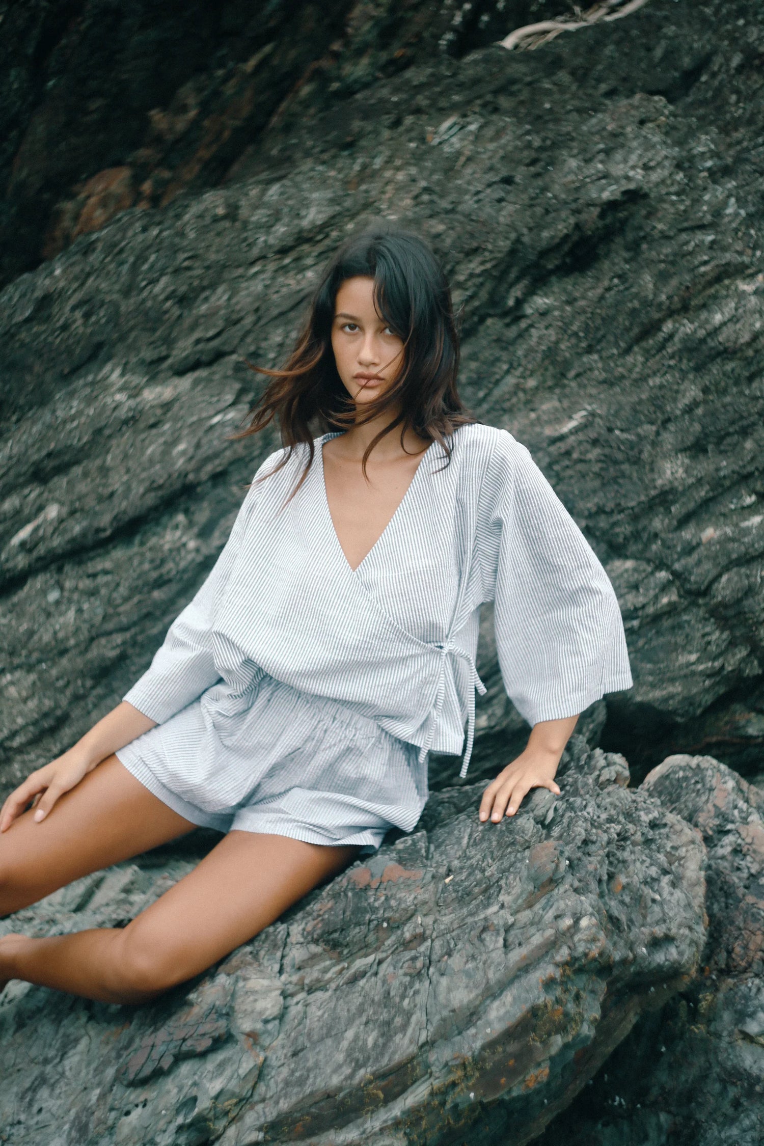 Crafted from a 100% Textured Cotton in our vibrant Spirulina Stripe, making these feel light and airy, with a thin elastic waistband that moves with you and practical front pockets for everyday ease. Whether you’re heading to the beach, wandering the markets, or lounging at home, they’ll be your go-to shorts all season long. Wear them with your existing wardrobe for a laid-back look, or pair them with the Chloe Blouse to create the sweetest spring set.