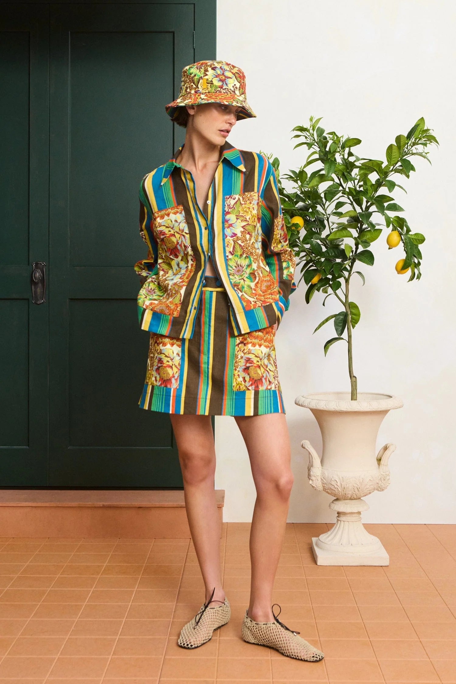 - Straight mini skirt silhouette