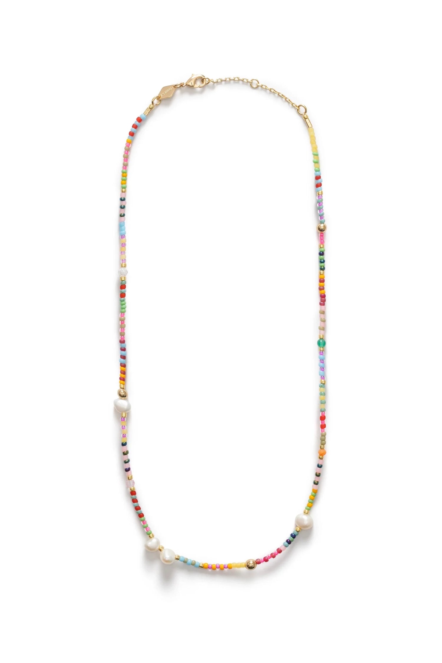 - Detailed in glass beads, jade, agate and cultured freshwater pearls