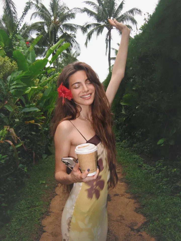 Blaise Asym Midi Dress in Palmera Floral. A printed midi dress perfect for elevated daywear or evening styling.
