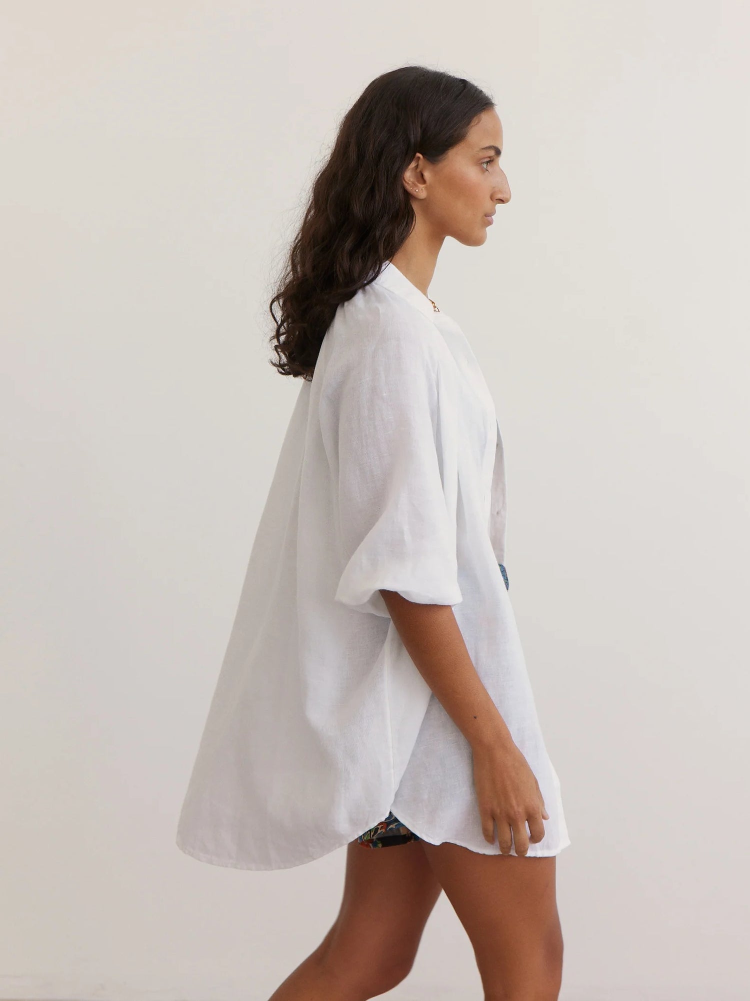 The beach essential that can be styled several ways, with shorts, over swim or with your favourite vintage denim. Relaxed fit with collar, shell buttons and ties at wrist for adjustability.