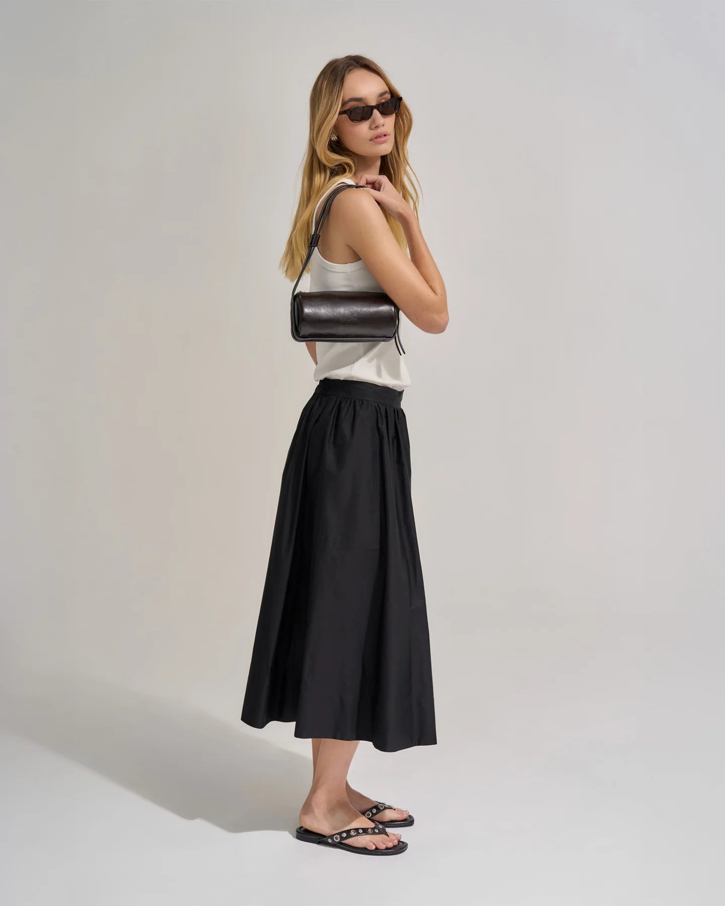 A contemporary take on a classic silhouette, the Brooke Mini Barrel Bag is designed for elevated everyday wear. Crafted from recycled polyurethane with a crackle effect finish and lined with 100% organic recycled cotton twill, this compact style combines structure and texture in equal measure.