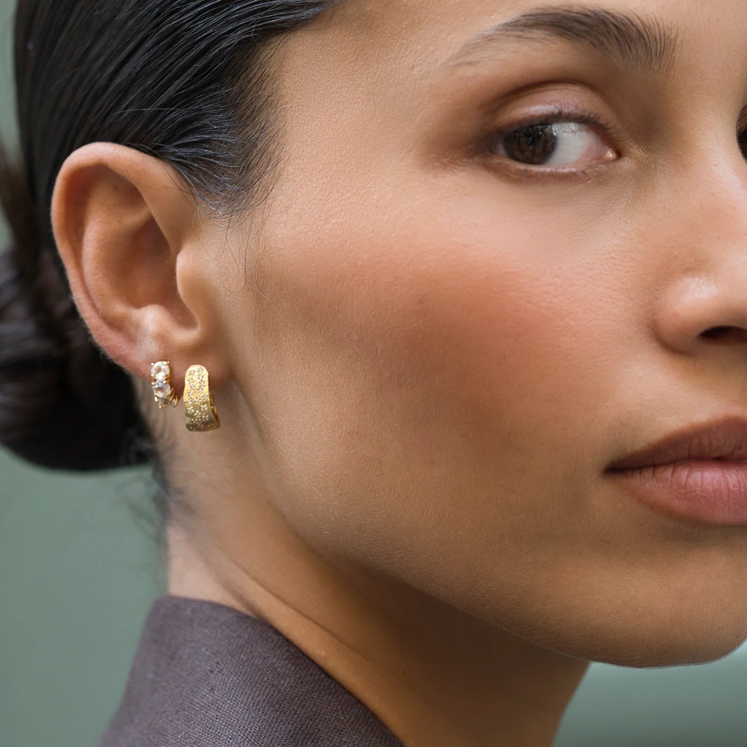 Dazzle effortlessly with the Mirage Twilight Hoops, a stunning pair of hoops encrusted with shimmering white crystals. Crafted to catch the light from every angle, these earrings bring a touch of twilight magic to any look. Lightweight and comfortable, these hoops are your go-to for radiant sophistication.