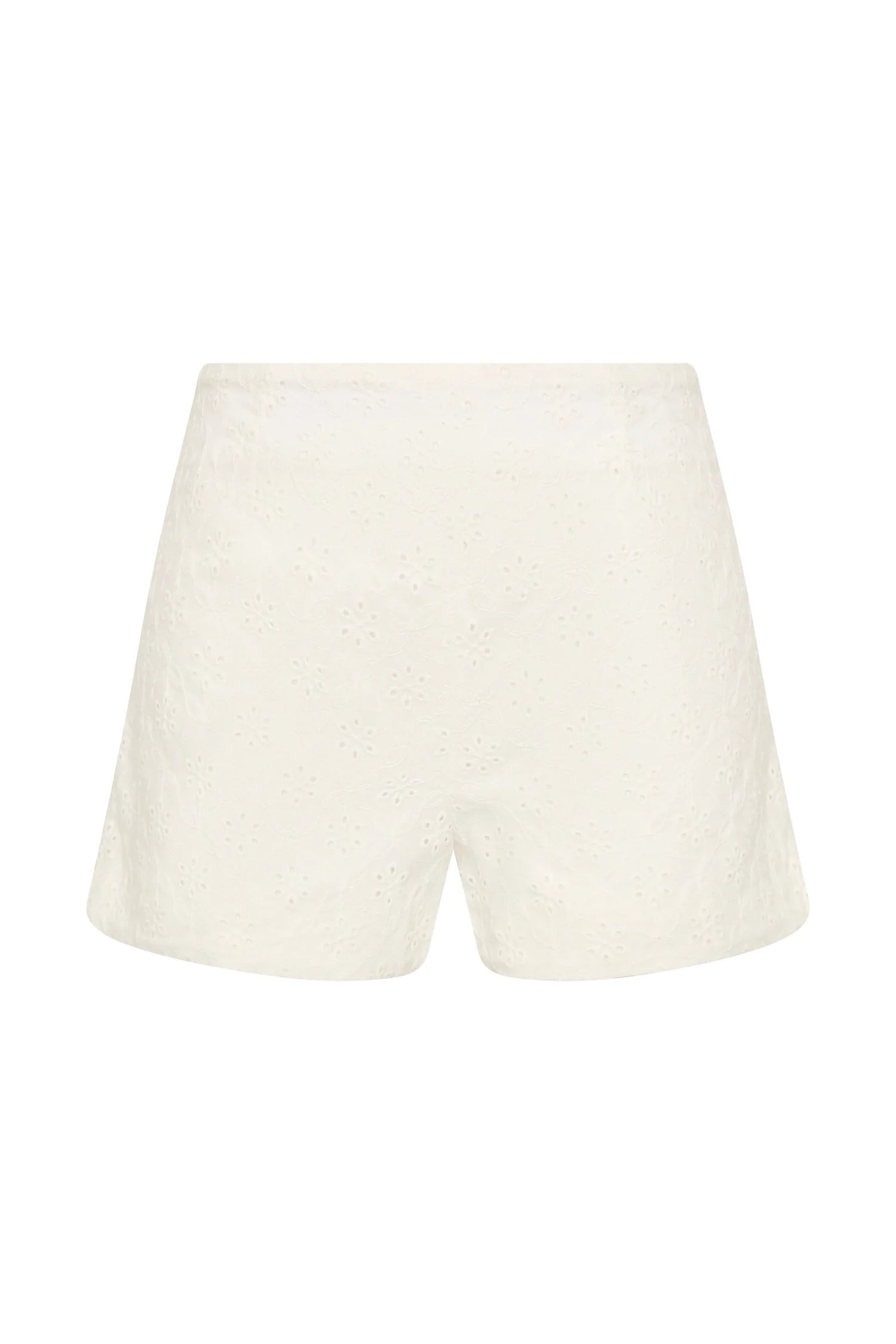 A mid-rise mini short, designed from a uniquely delicate anglaise broderie fabrication in a warm white. Sitting comfortably around the waist, they have a relaxed yet straight fit that flares out slightly at the hem. Style with the matching Olivia Top for summer-inspired set dressing.