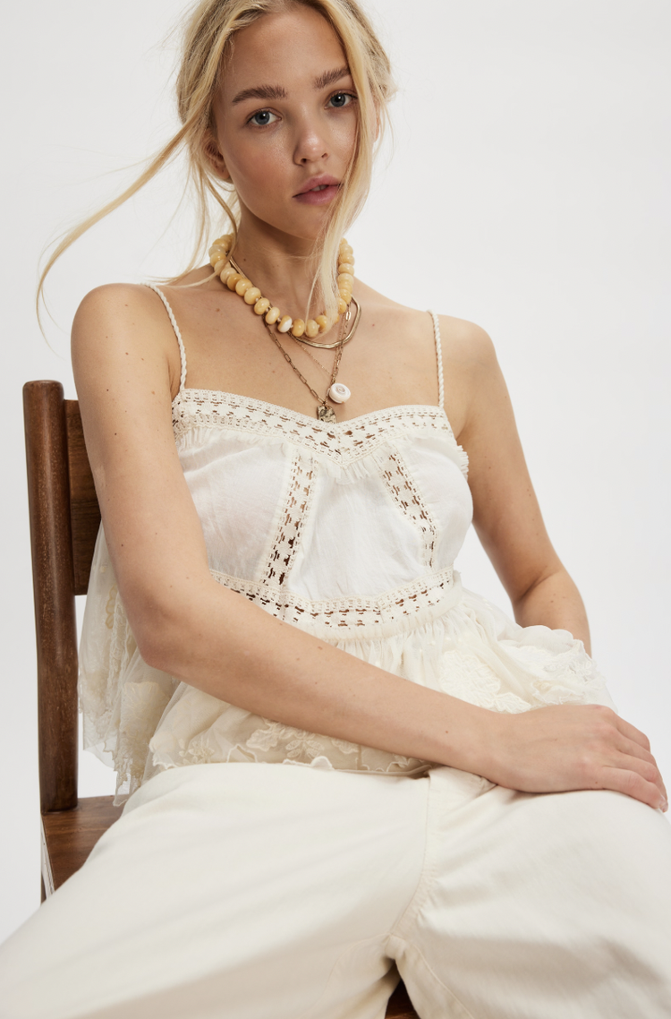 Oh-so dreamy in every way, this delicate cami from Intimately features all of our favorite femme details like a tiered tulle peplum, floral appliques, and delicate twisted straps.