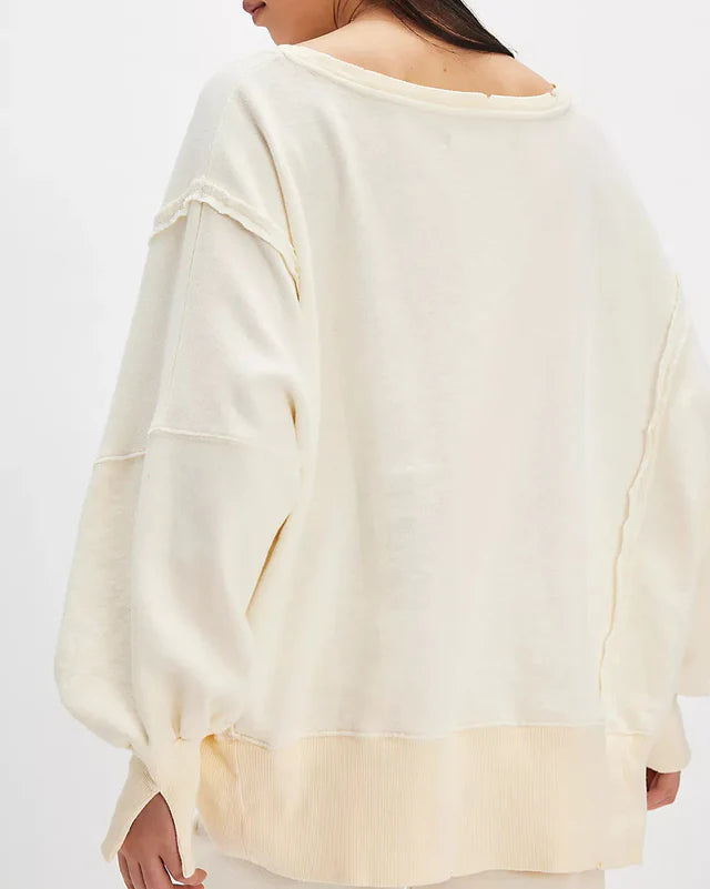 Features: Scoop neckline, dropped shoulders, side slits at the bottom, ribbed hems, defined seams