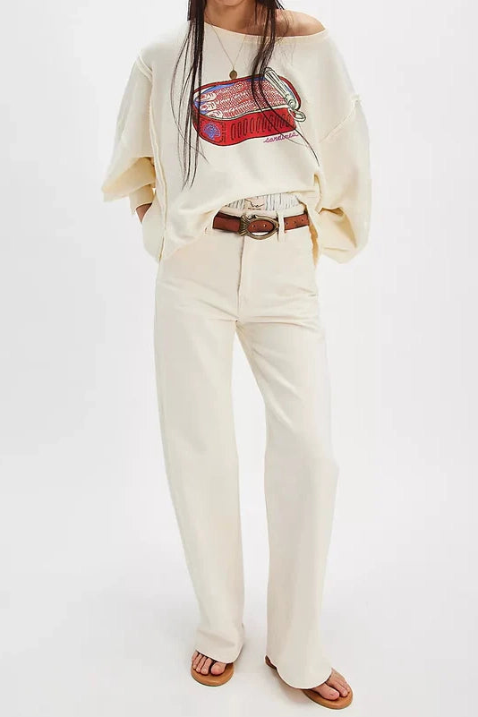 Effortlessly cool and comfortably relaxed, this oversized sweatshirt adds a touch of playful personality to your everyday look. Designed with a laid-back silhouette and dropped shoulders, it features a bold, vintage-inspired graphic across the front for that easygoing, artsy vibe. The soft cotton-blend fabric feels cozy against the skin, making it perfect for layering through the seasons.