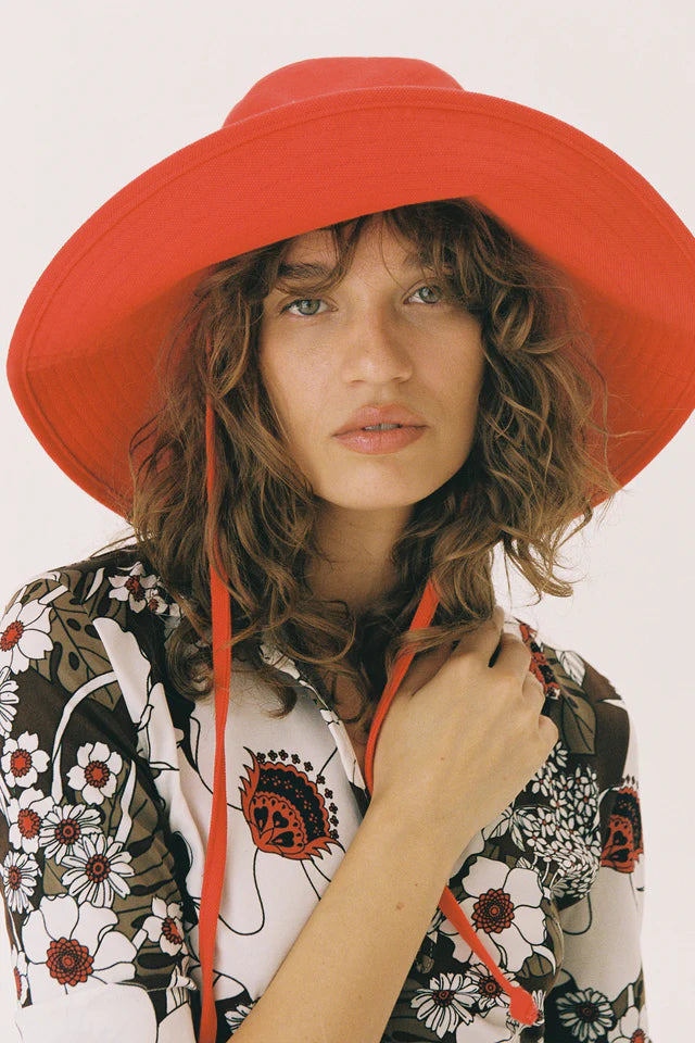Made from 100% cotton canvas in a vibrant Flame colourway, our holiday bucket is finished with a simple and secure necktie, ensuring this hat goes everywhere you do.