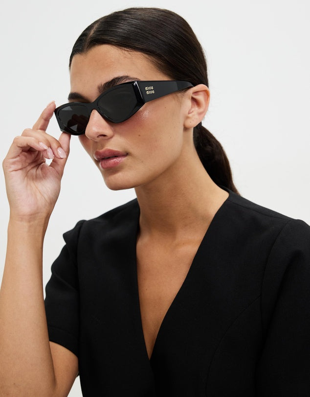 Miu Miu Oval Rectangular Sunglasses Black 0MU 06YS