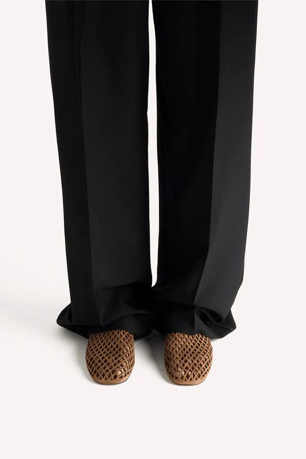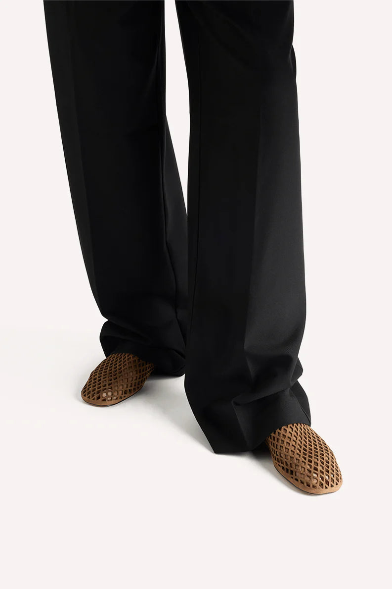 The Jade Flat is a slip on silhouette with lived-in allure. Presenting soft suede fabrications accented with precision laser-cut detailing.