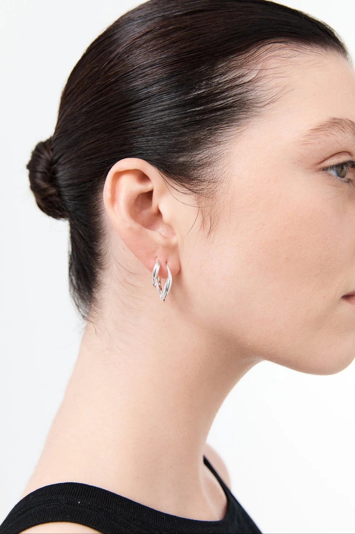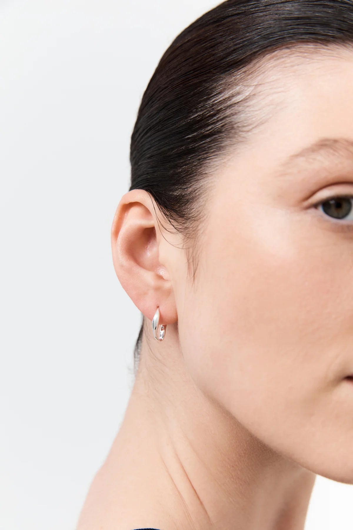 Version Hoops – Mini are 16 mm hoops made with an invisible soft-closure clasp. Shaped with soft, organic edges for consistency in form and fit. The design balances a compact size with structural integrity for the most minimalist of form