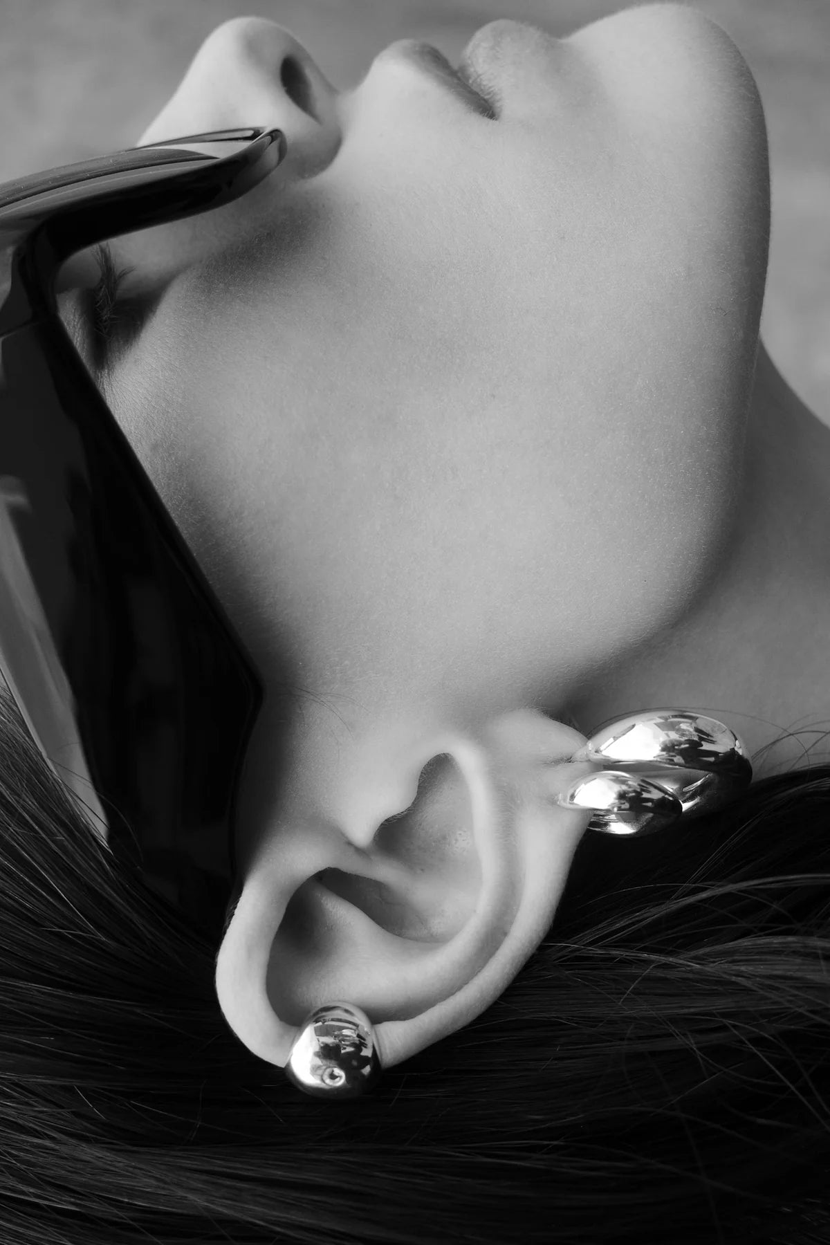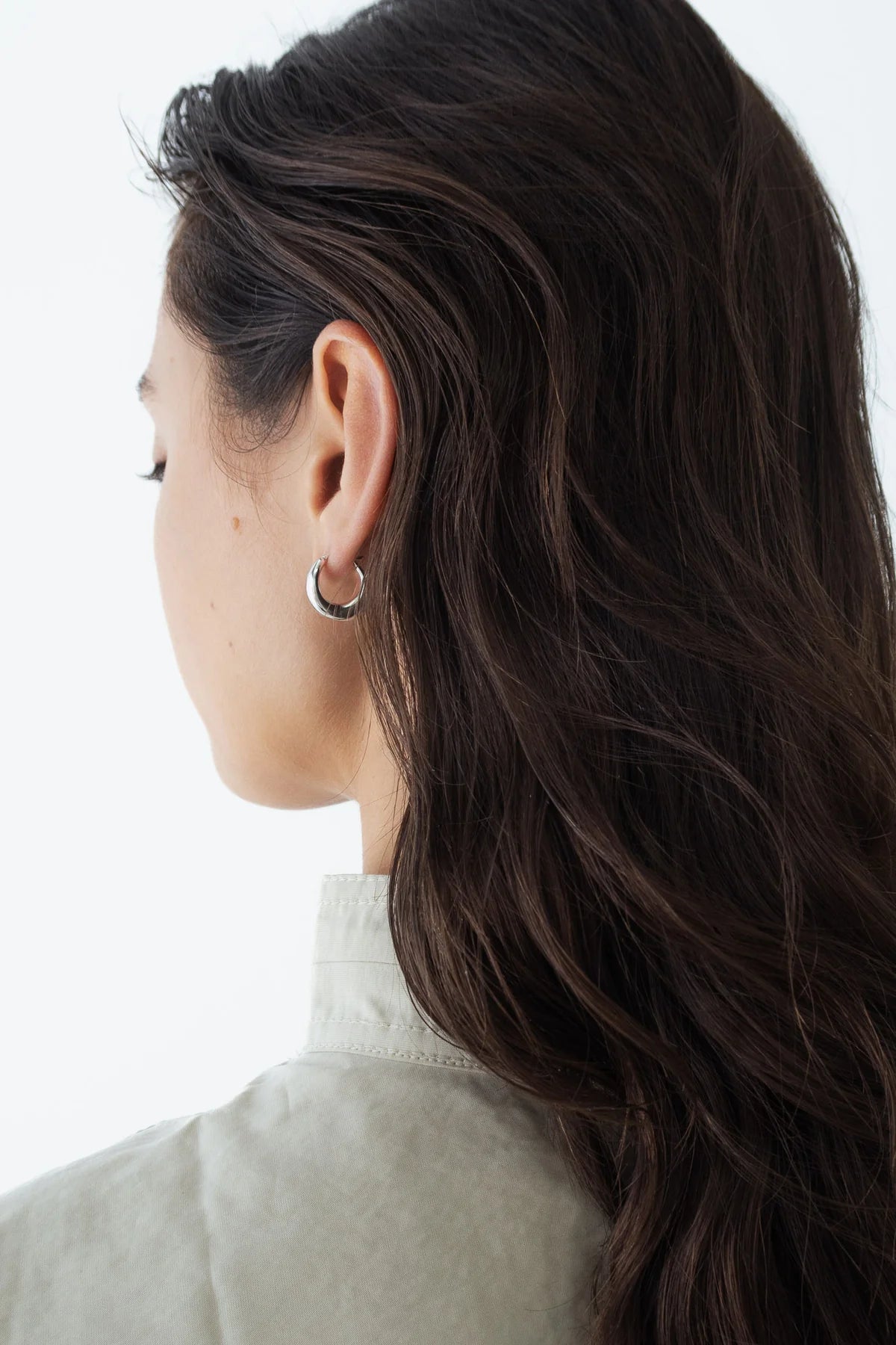 A hollow tube hoop with gentle organic curves that catch the light from every angle. Light and sculptural, they move with you and layer beautifully with other earrings or stand alone as a subtle statement.