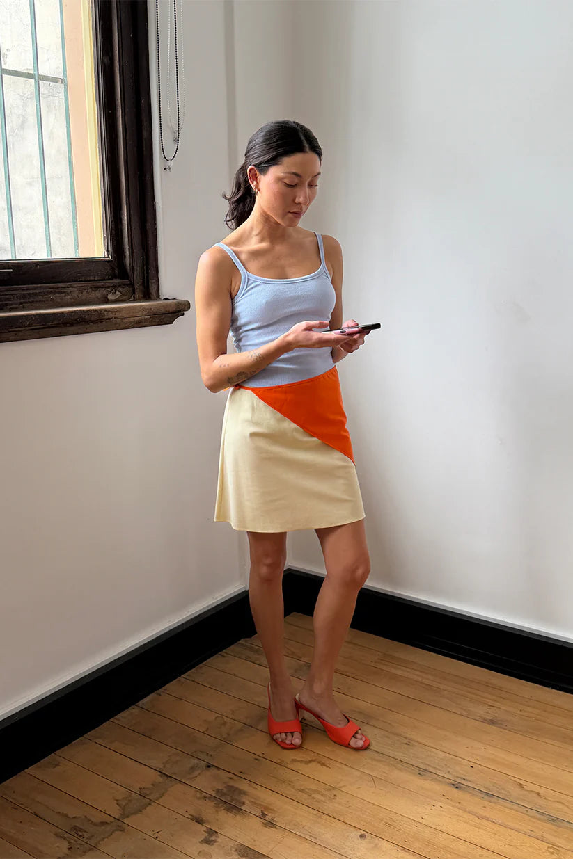 Mini skirt in plain-weave cotton/tencel, featuring an elastic waistband with zig-zag stitching. Lightweight and breathable, this skirt is perfect for everyday wear.