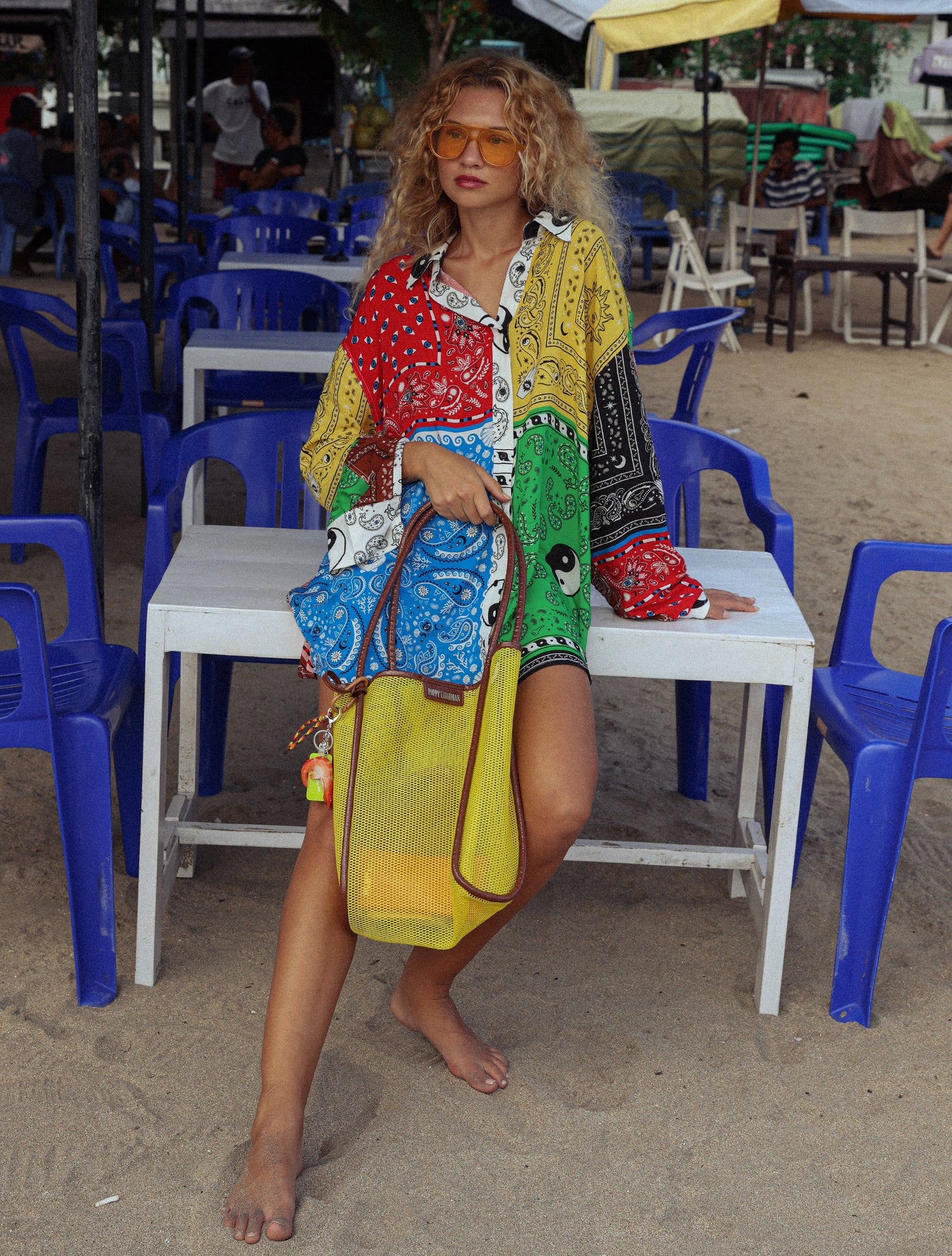 The Shatsu Shirt is a unisex, oversized button-up crafted from lightweight, high quality rayon. Printed in our signature Multi Bandana design — developed in-house and digitally rendered in vibrant colour. An easy, breathable layer year-round, this unisex bandana print shirt works as a beach cover-up, daily uniform, or statement piece.