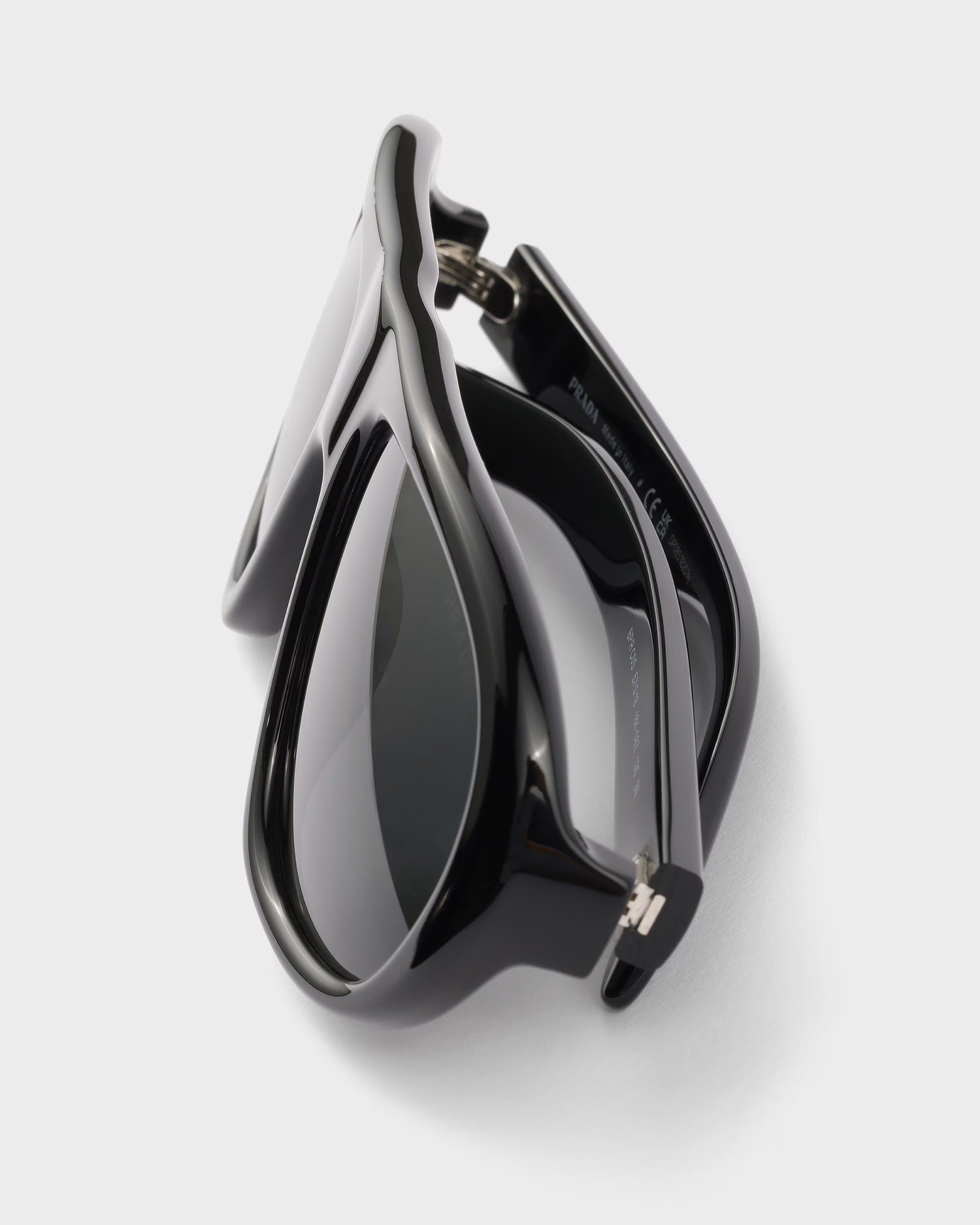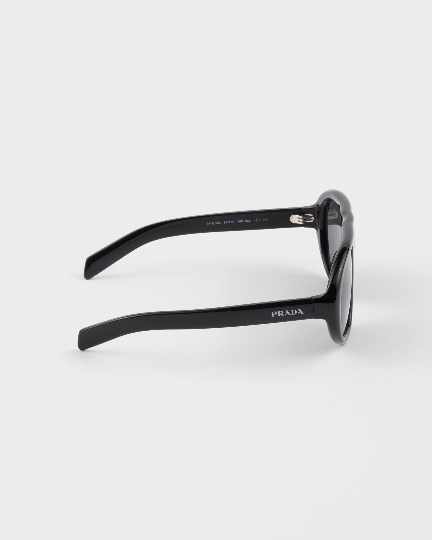 Acetate sunglasses with an oversized design. The frame features an oversized pilot silhouette and large volumes that give it a contemporary, feminine look. The rounded temples are decorated with the enameled Prada logo.