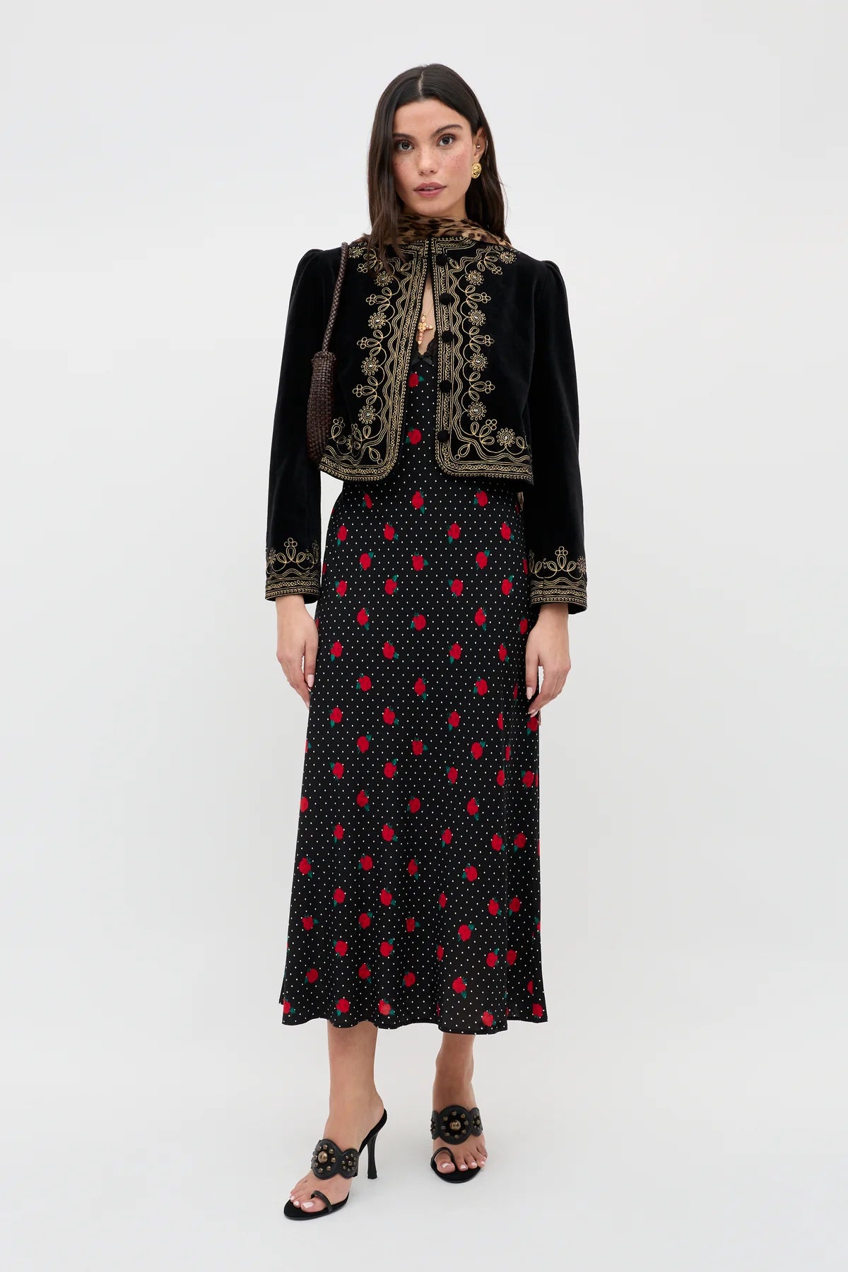 Clarice Midi Dress Rose Spot Black