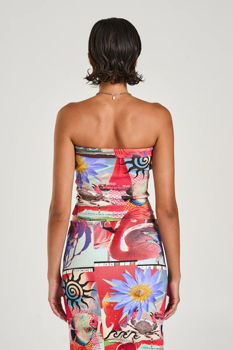 Upgrade your wardrobe with the modern ribbed Tube Top, now showcasing the Dazed print. Created to elevate and support in all the right places, complete with a non-slip lining